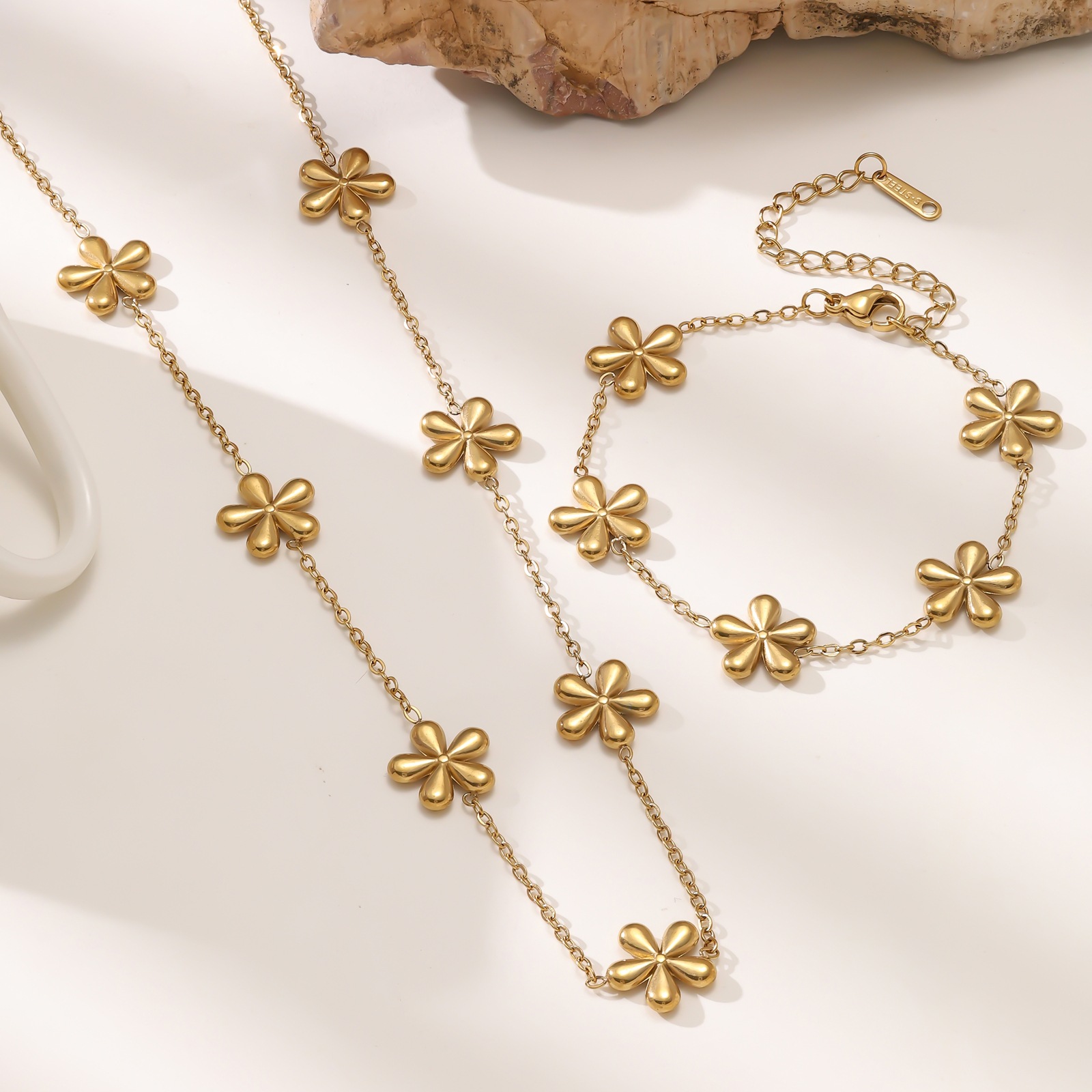跨境新款小雏菊不锈钢手链轻奢时尚镀18K真金不掉色项链套装批发