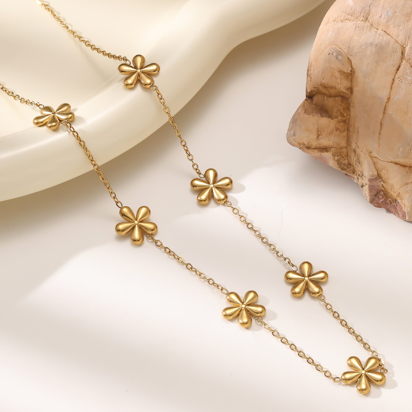 INS风锁骨链项链女轻奢个性小雏菊花朵手链镀18K金不掉色套装批发