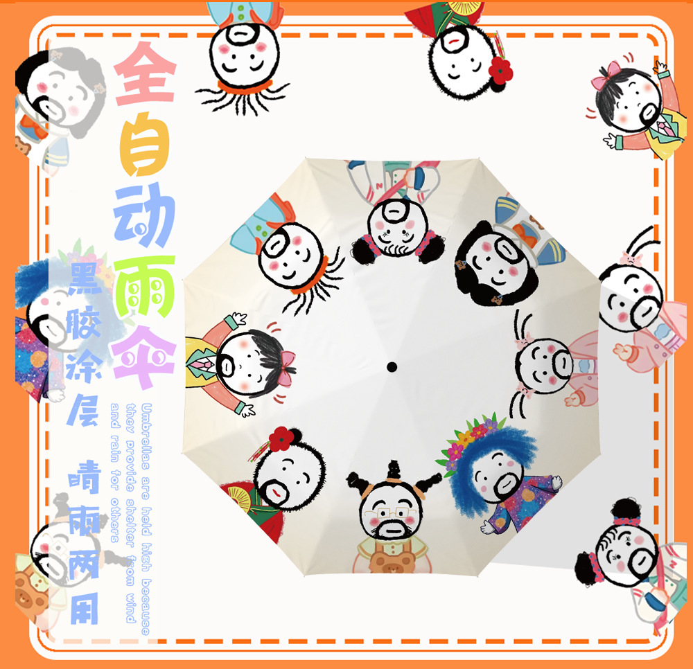 面白くてかわいい傘 全自動日傘 女性用 晴雨兼用 日焼け止め UVカット ビニール折りたたみ日傘