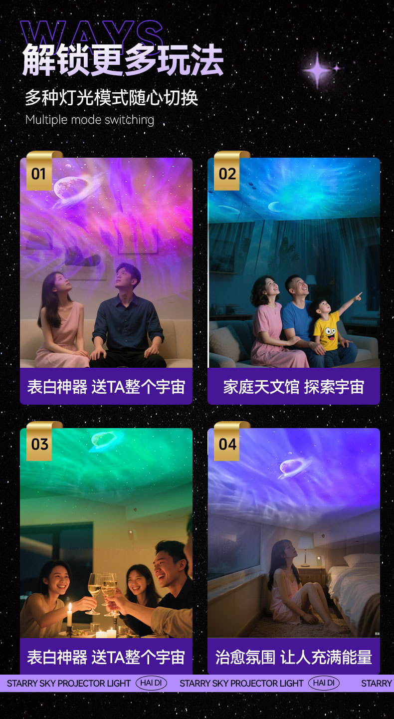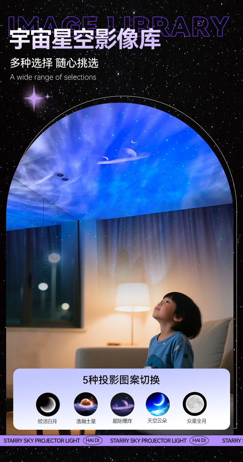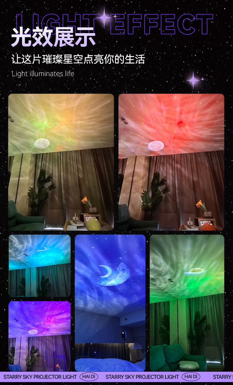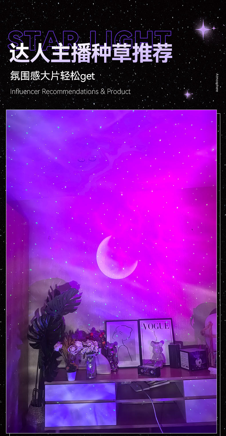 北极光星空投影灯激光满天星月亮小夜灯直播间氛围灯蓝牙音响礼物