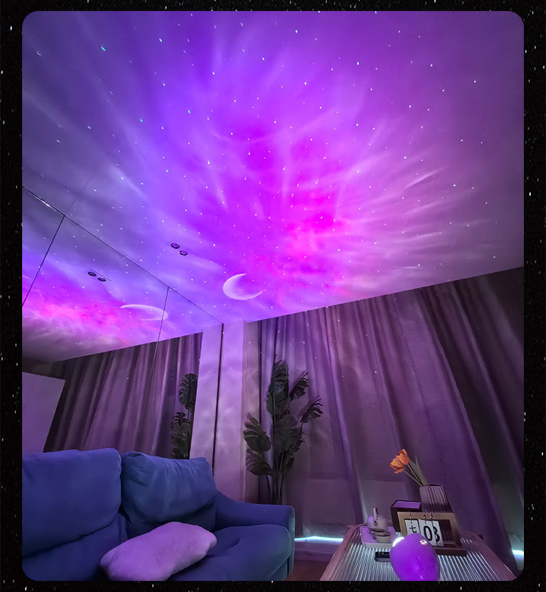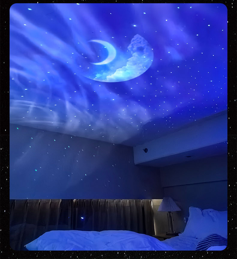 動的な水波紋雰囲気ランプ、寝室ベッドサイドナイトライト、星空投影、ムードライト、オーロラ投影