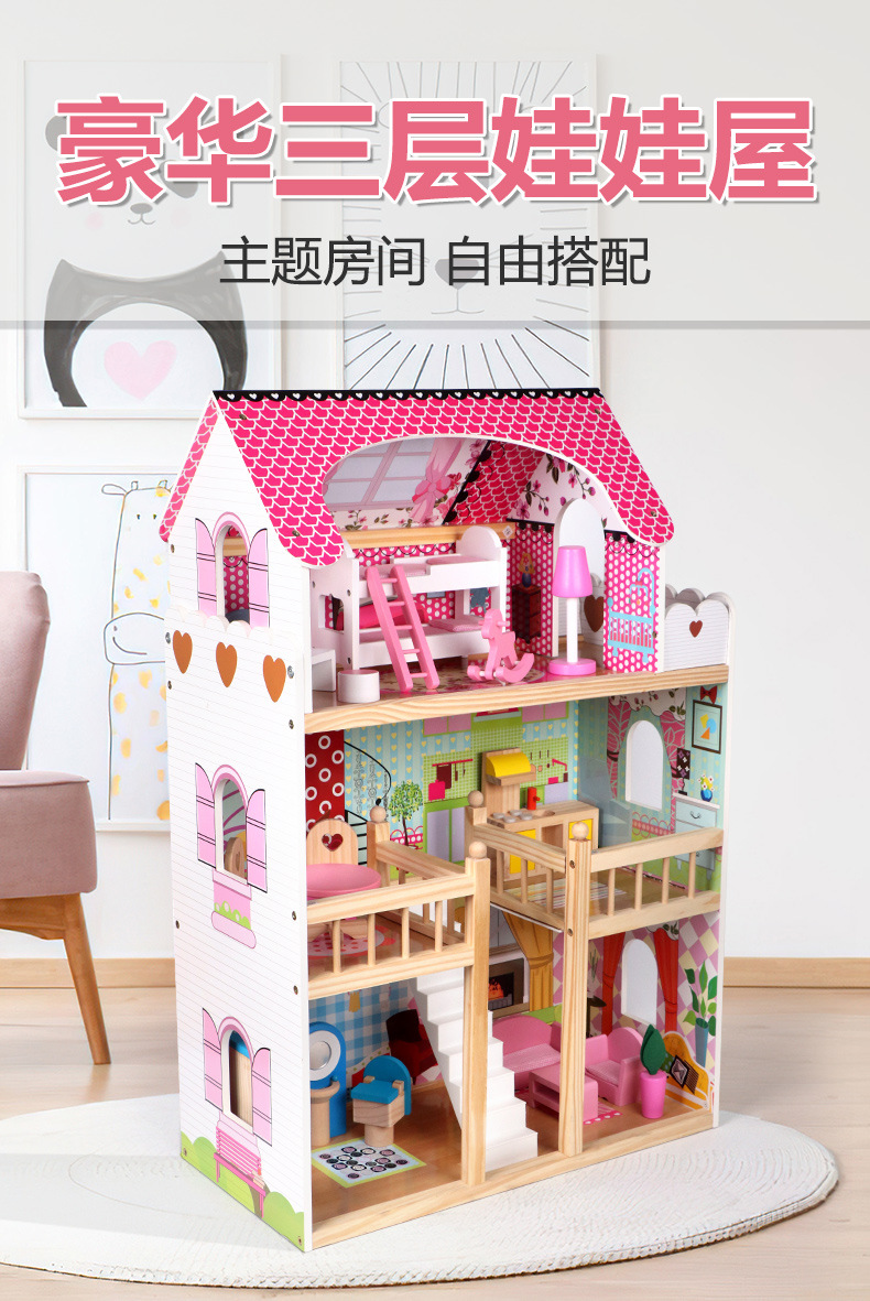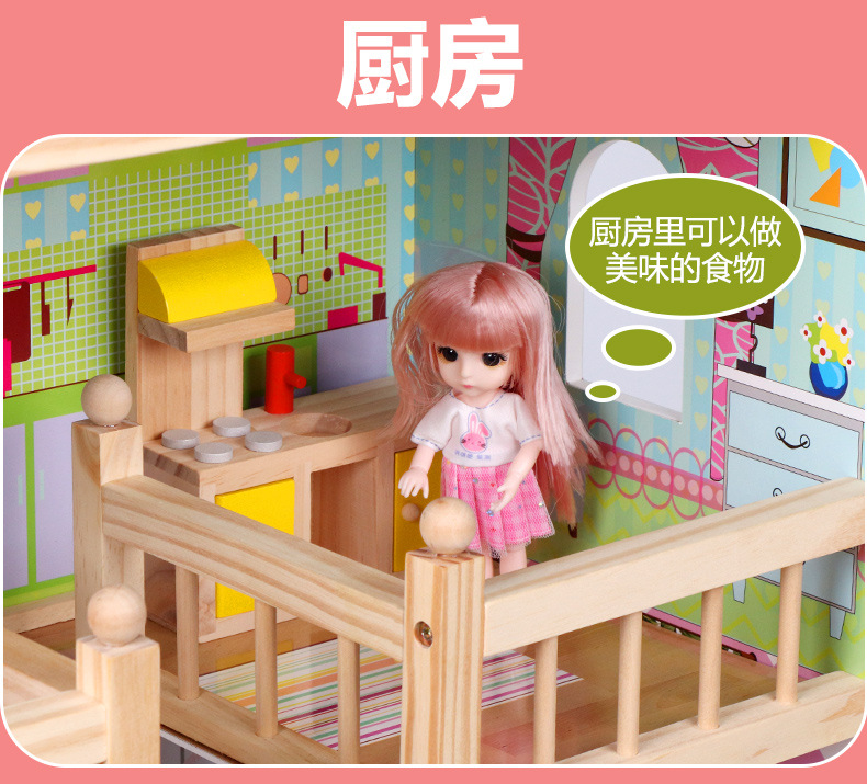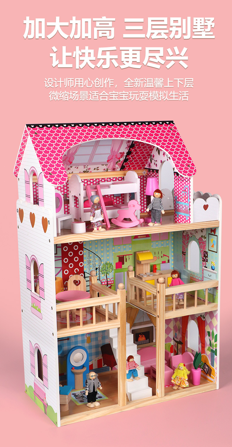 子供diy木製大型お姫様別荘城人形屋シミュレーション山小屋家具ままごと玩具