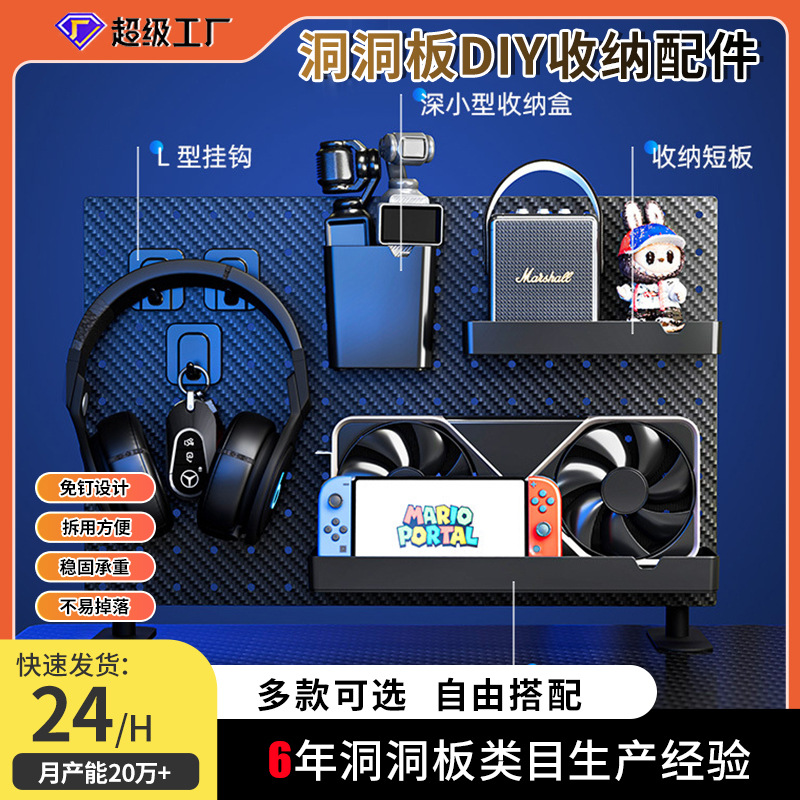 DIY洞洞板电竞墙上隔板可定制置物架书房电脑桌书桌收纳架壁挂式