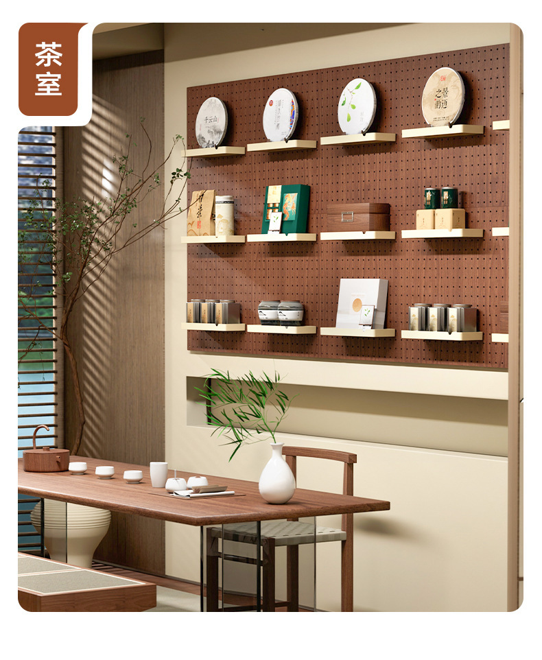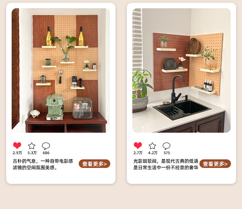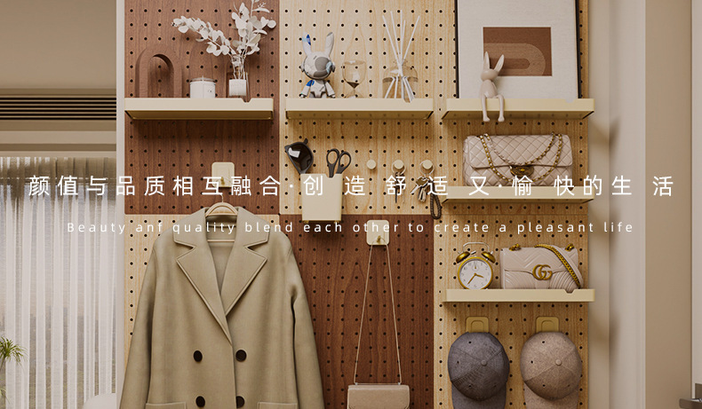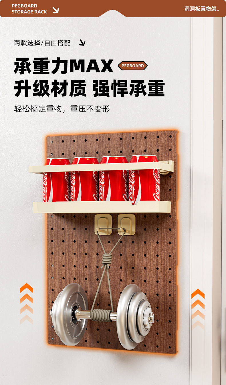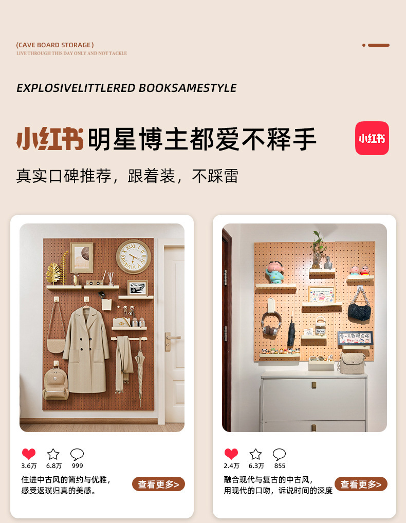 洞洞板实木纹理置物架墙收纳墙上书桌展示架入户门口玄关壁挂式