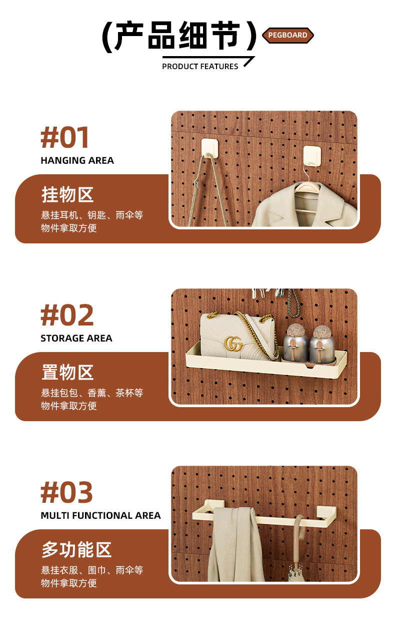 圆孔洞洞板配件16孔距挂钩挂件盛具盒套装置物架收纳壁挂式
