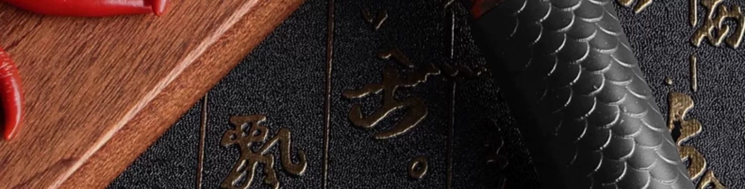 仕様 龍鱗柄肉切り包丁+革ケース,龍鱗柄骨抜きナイフ+ゴムスリーブ