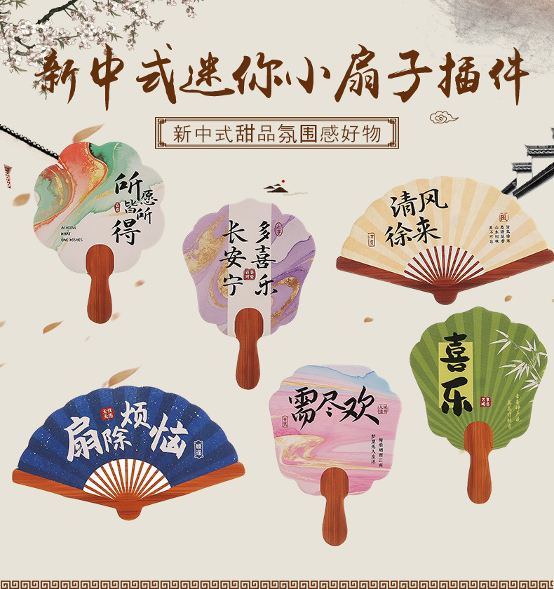 国風中国風扇子が金持ちになる喜びはいつも楽しい祝福語団扇ネット赤スイーツケーキ装飾プラグイン
