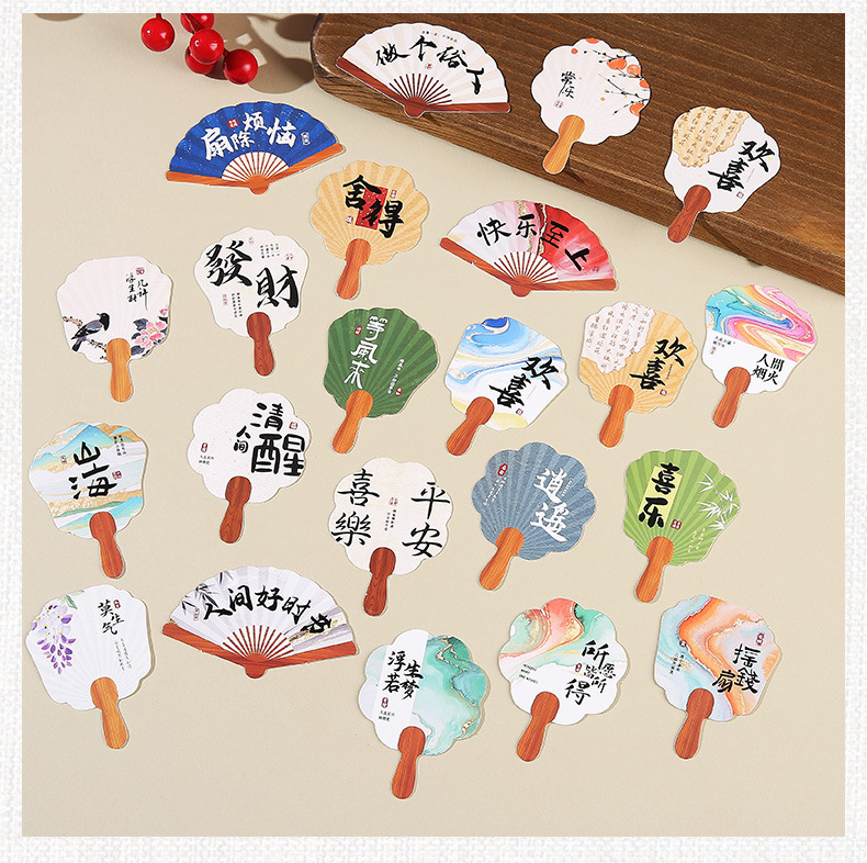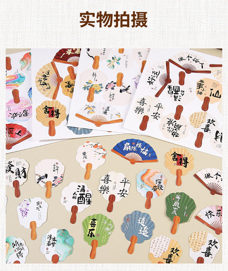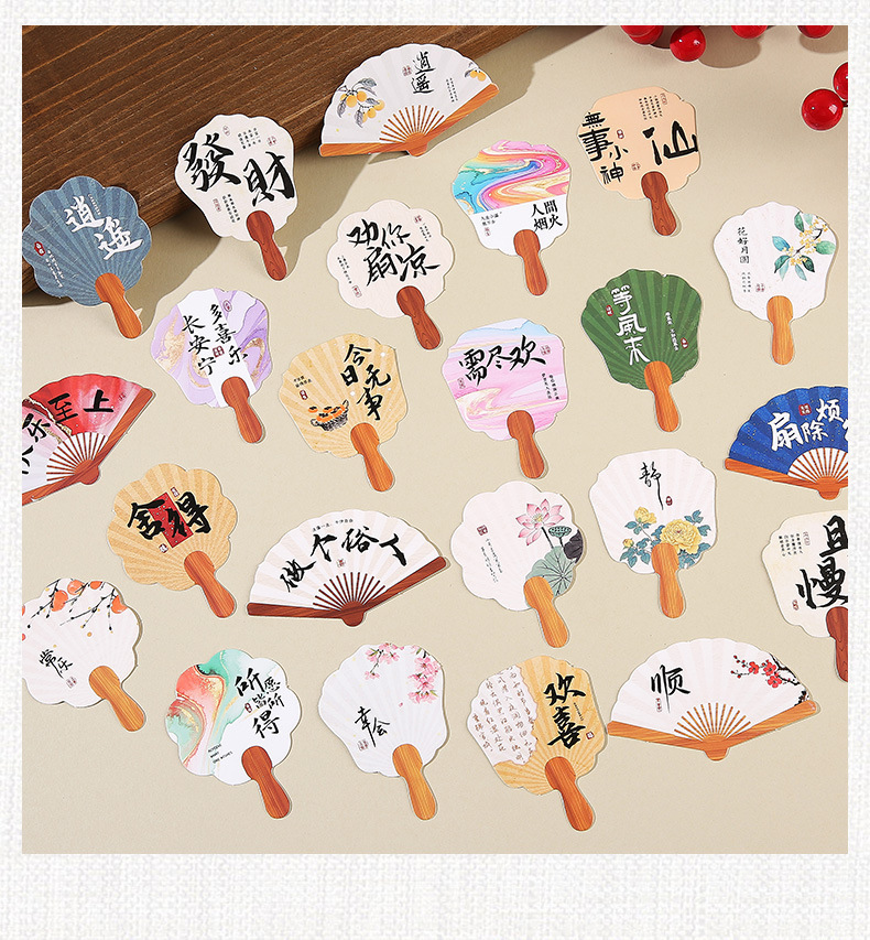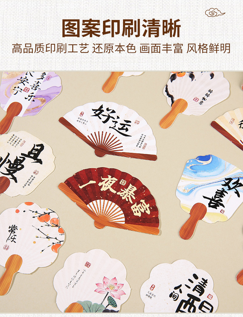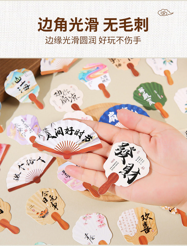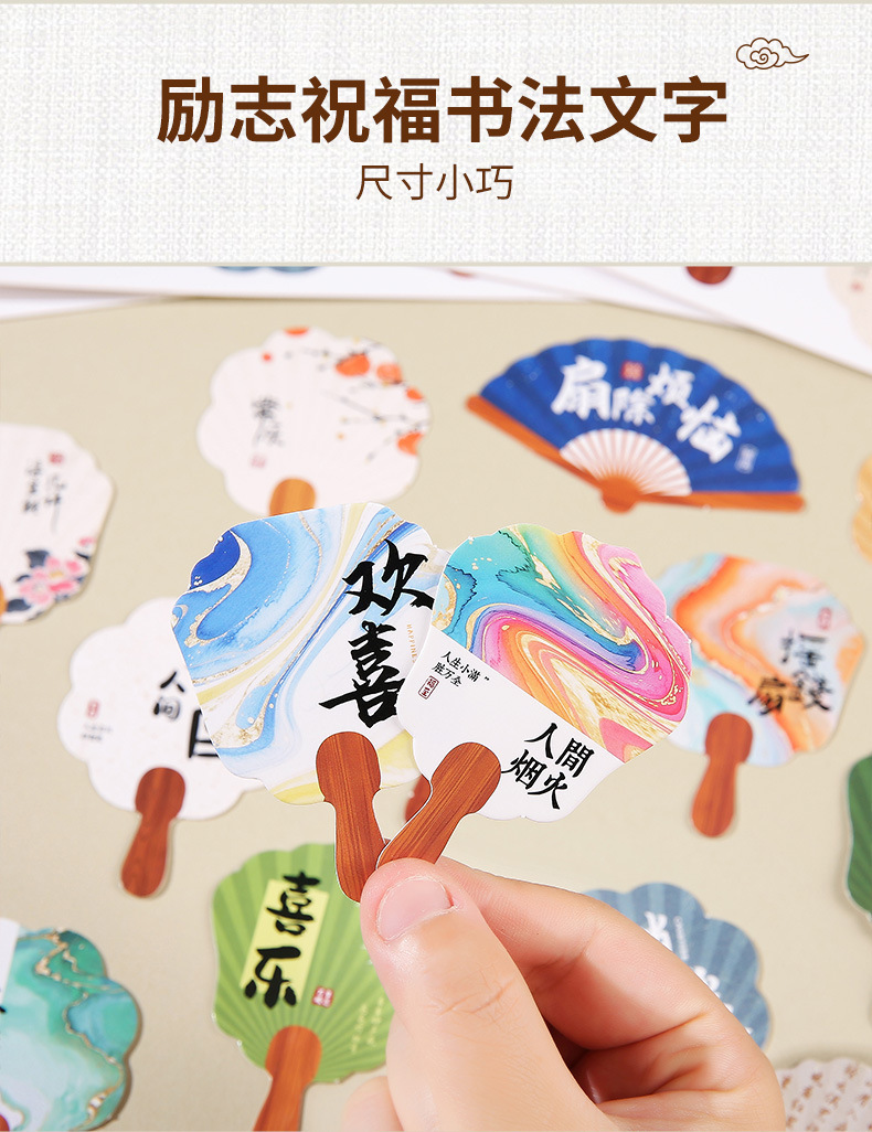 创意小扇子书签国潮古风励志书法文字迷你异形扇手账装饰明信片