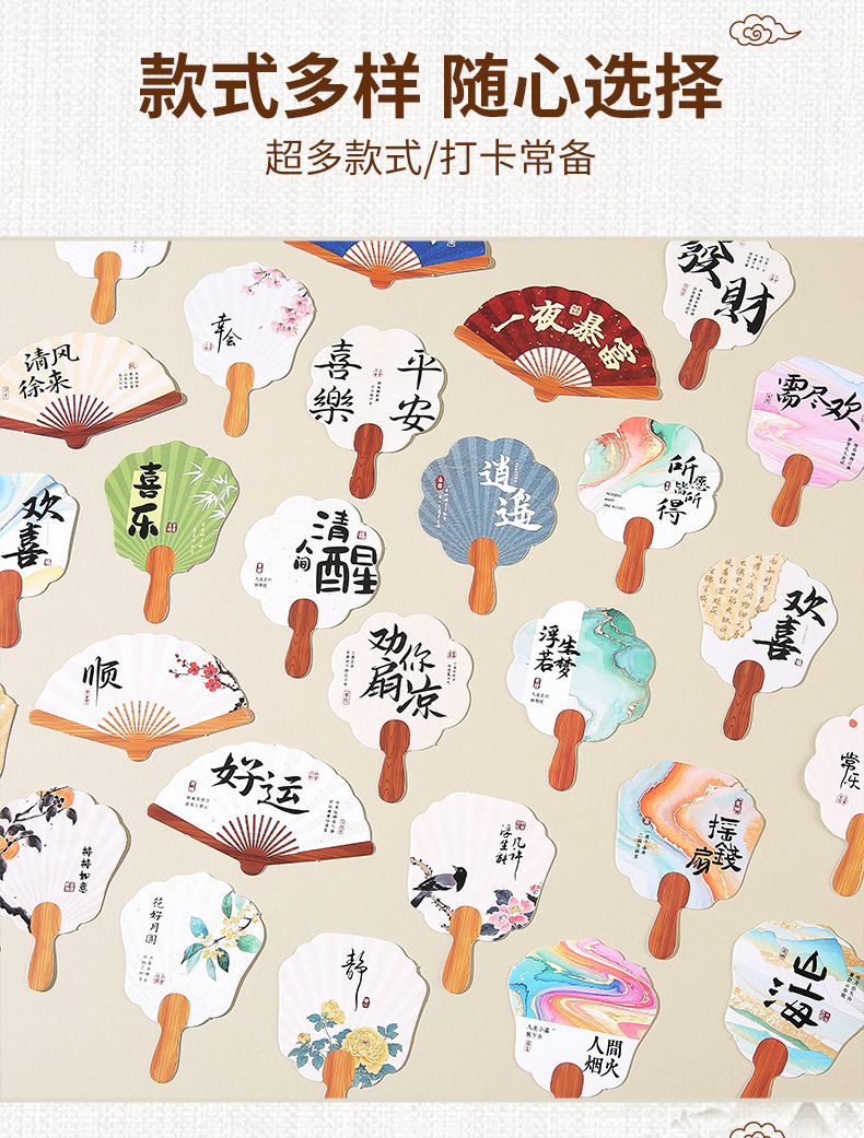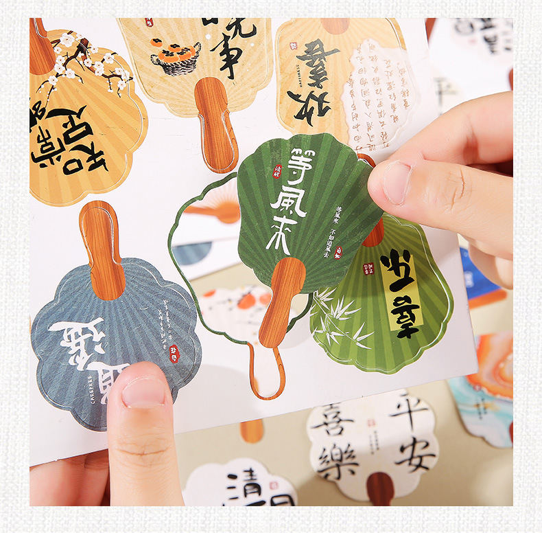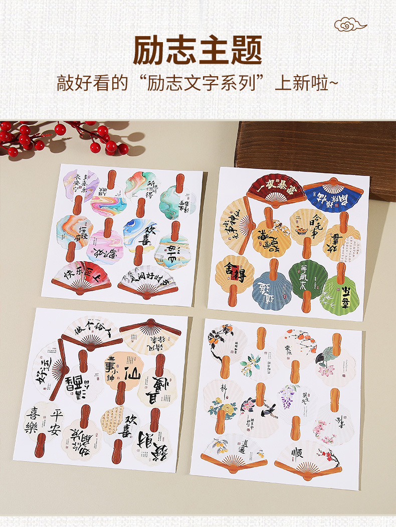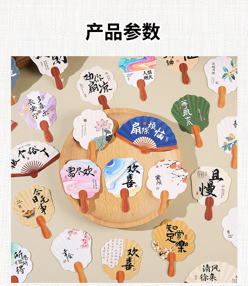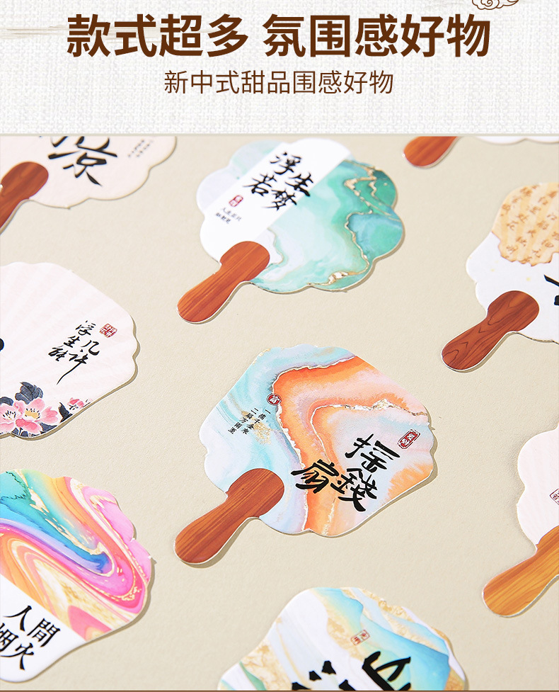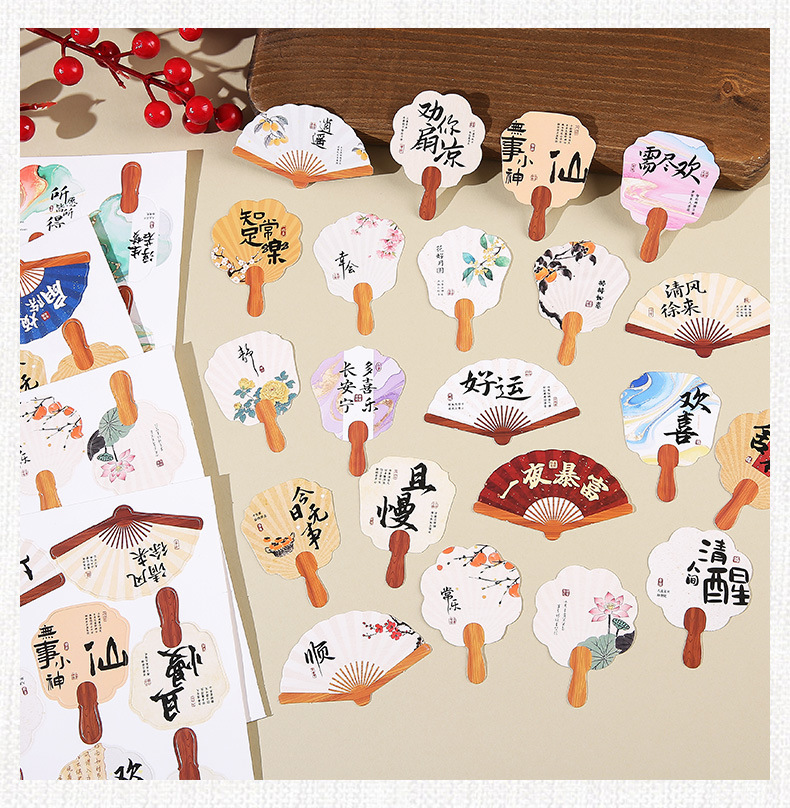 创意小扇子书签国潮古风励志书法文字迷你异形扇手账装饰明信片