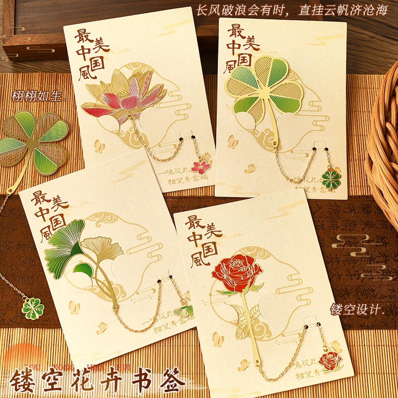 クリエイティブ中空真鍮ブックマーク学生特殊形状金属中国風ペンダントブックページクリップ文化創造学習文具卸売