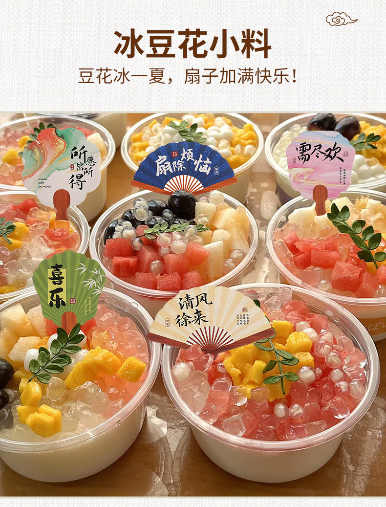 新中国式のデザートの飾り扇子のカードネットの赤い氷の豆の花のプラグは花のアイスクリームの扇子を表装して現物を挿します。