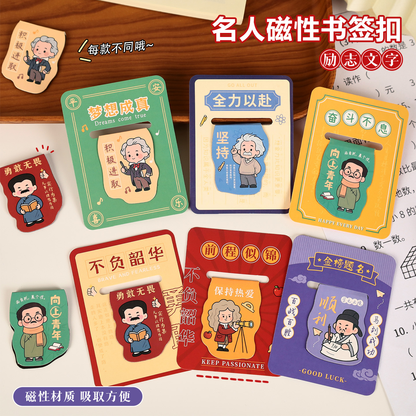 卡通名人磁性书签学生高颜值奖励礼品励志文字折叠书页夹文具批发