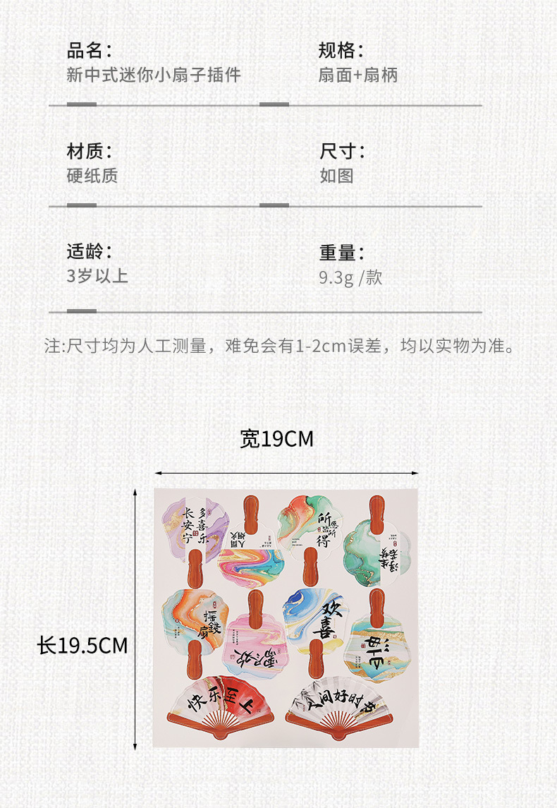 国潮小賀状平安喜楽祝日祝福メッセージカードミニ扇子カードケーキデザート装飾カード