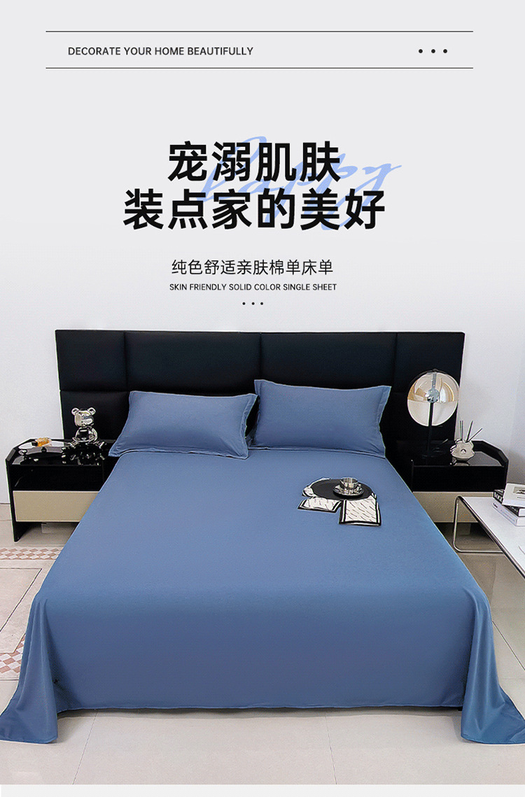 母婴级A类100%纯棉床单单件全棉磨毛纯色床单三件套学生宿舍床单