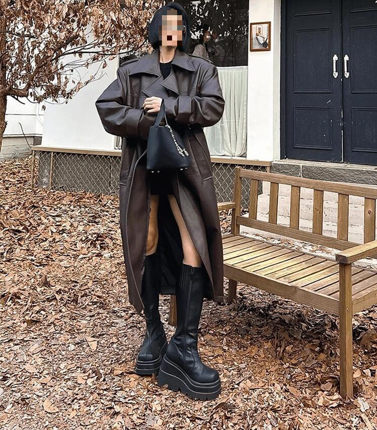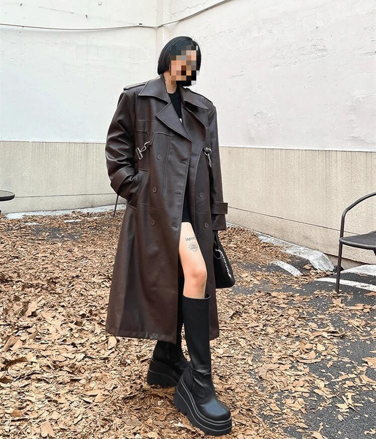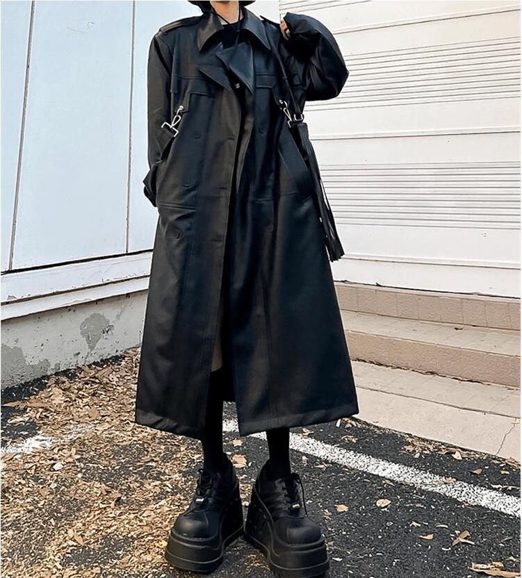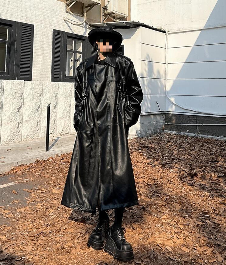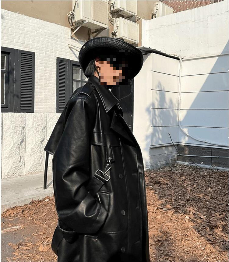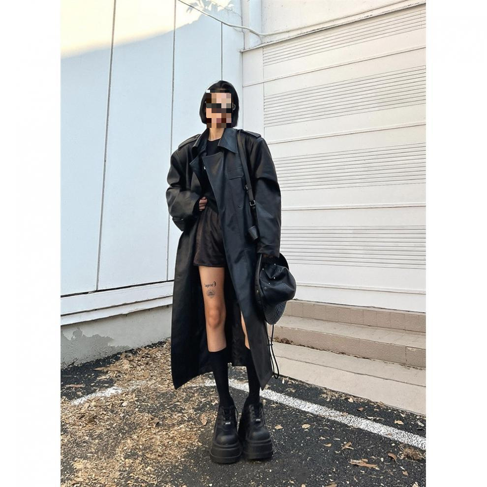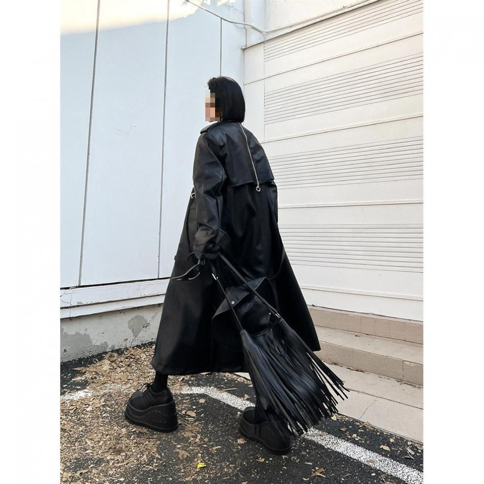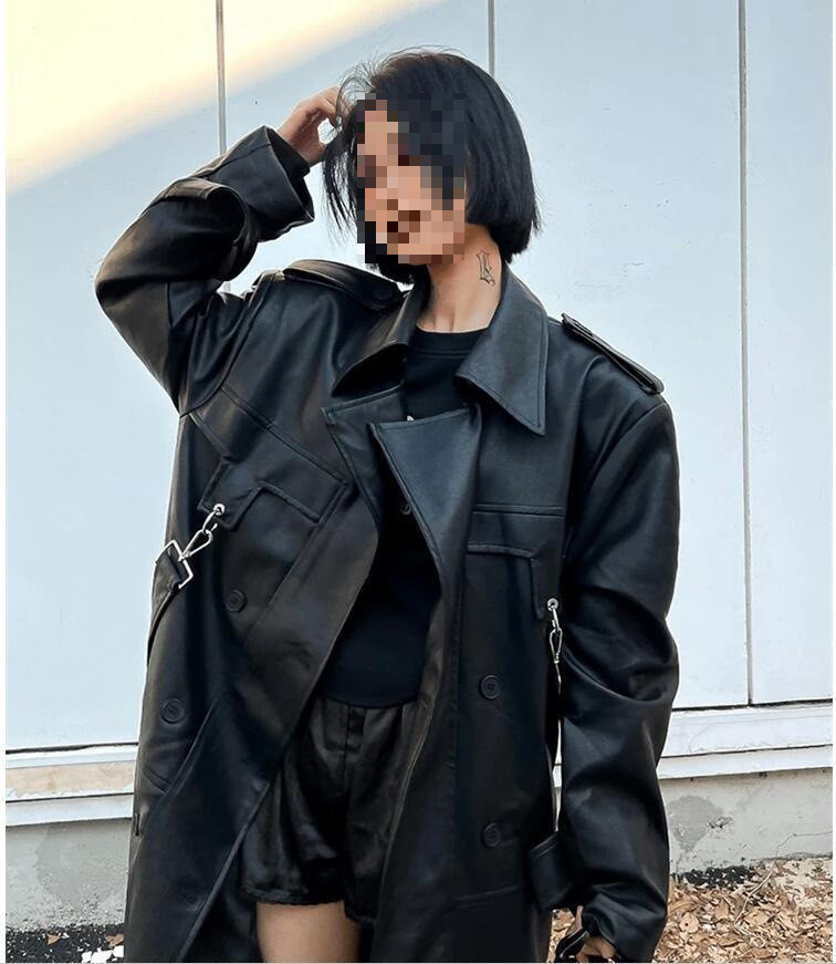 K4H ヘビーウェイトハイセクションクールニュートラルシルエットロング Pu レザージャケット女性のための 2023 新しいレザーウインドブレーカー