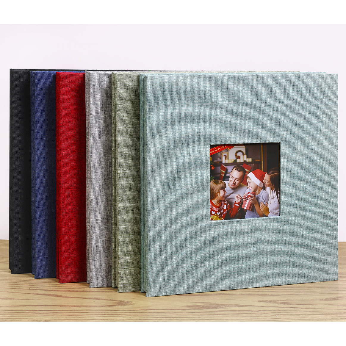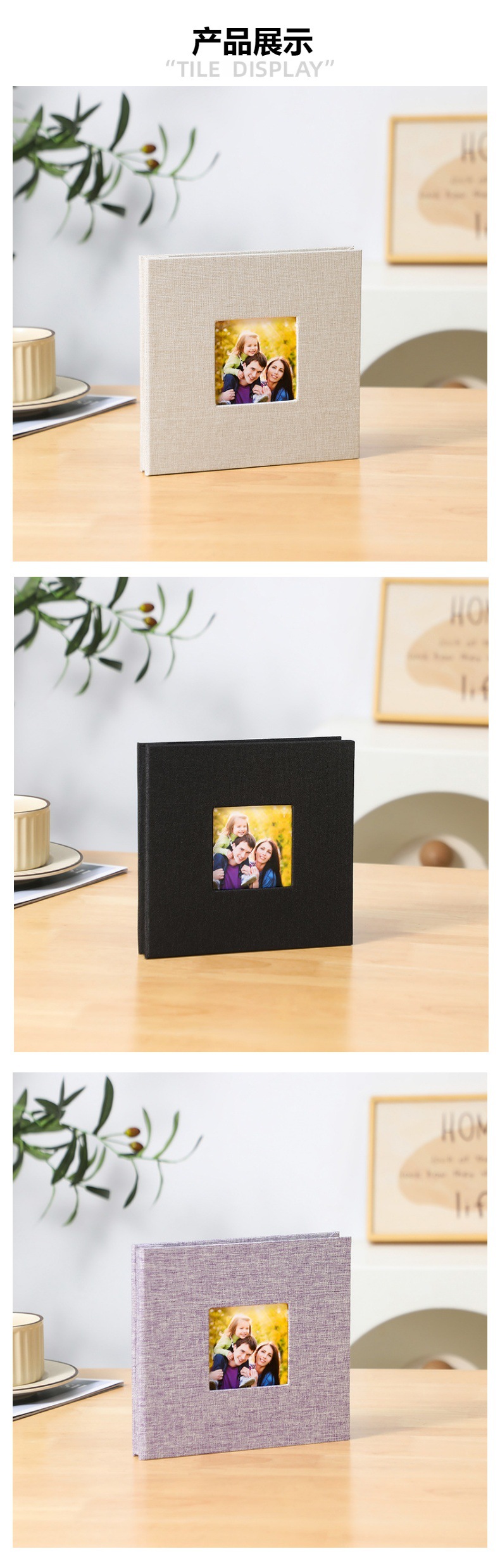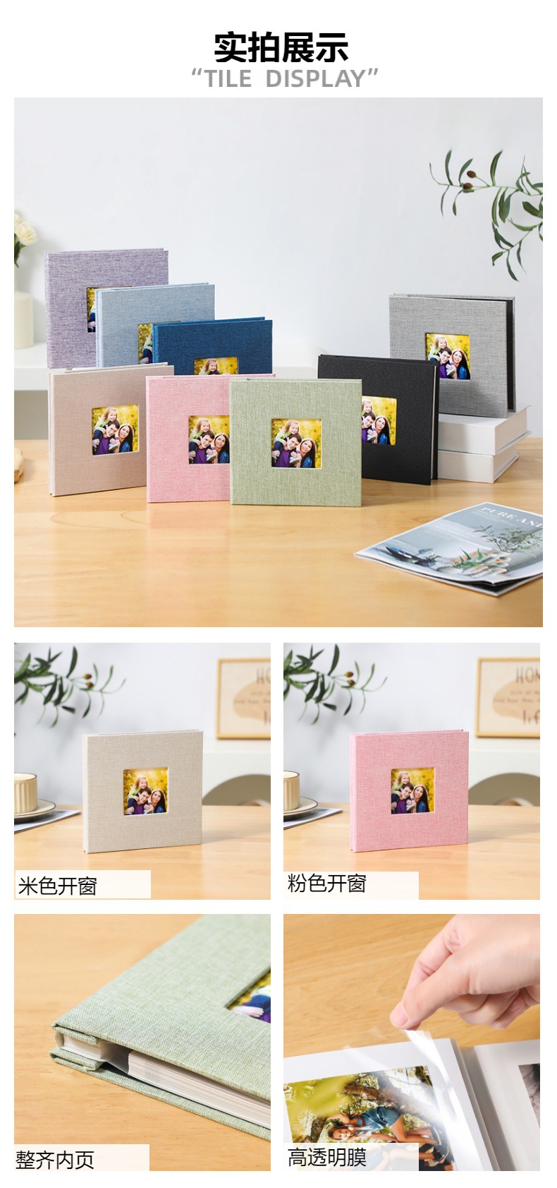 跨境麻布面开窗自粘覆膜相册家庭影集DIY粘贴式手工集邮相册现货