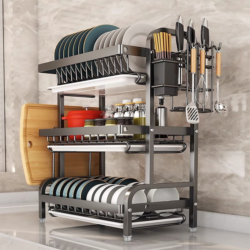 国境を越えて人気の高いキッチン用食器乾燥ラック、多層式カトラリーホルダー、食器収納ボックス