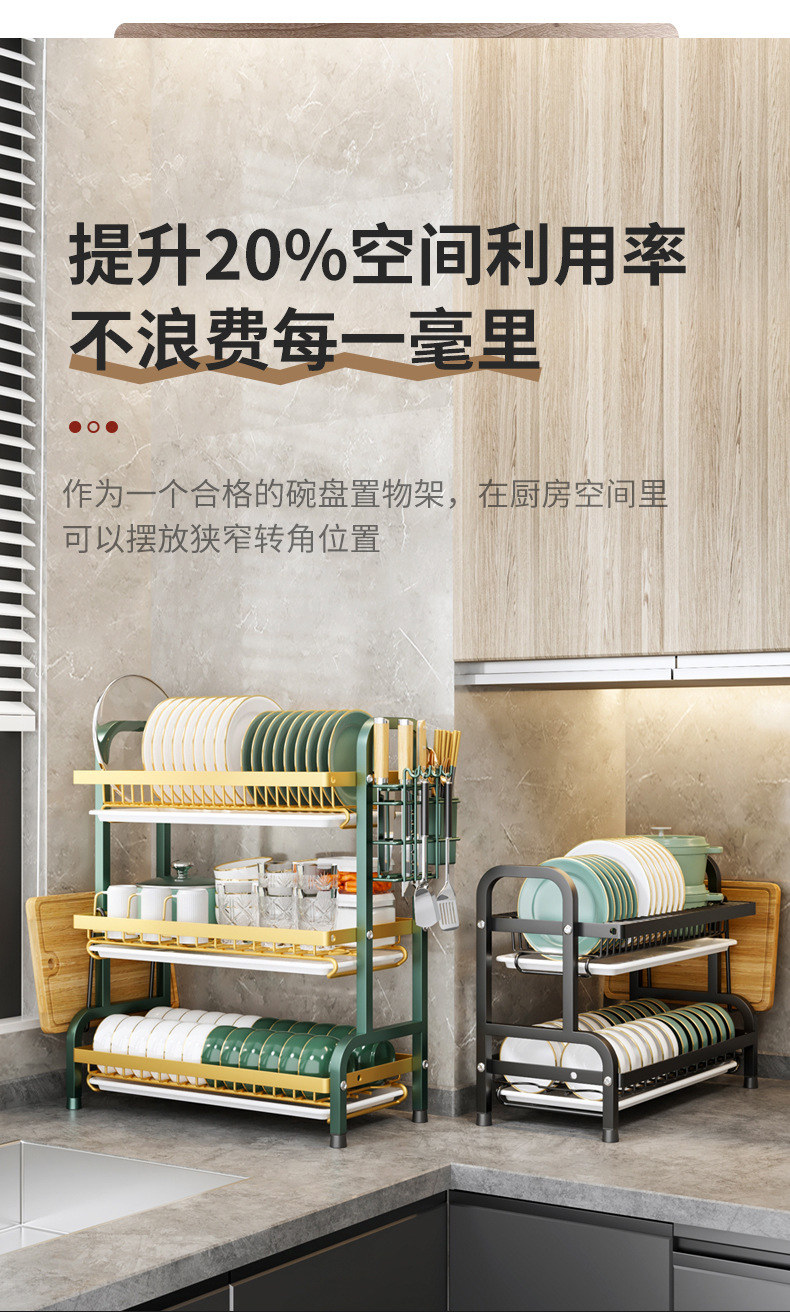 跨境多功能沥水架家用厨房台面碗碟砧板收纳架大容量餐具置物架