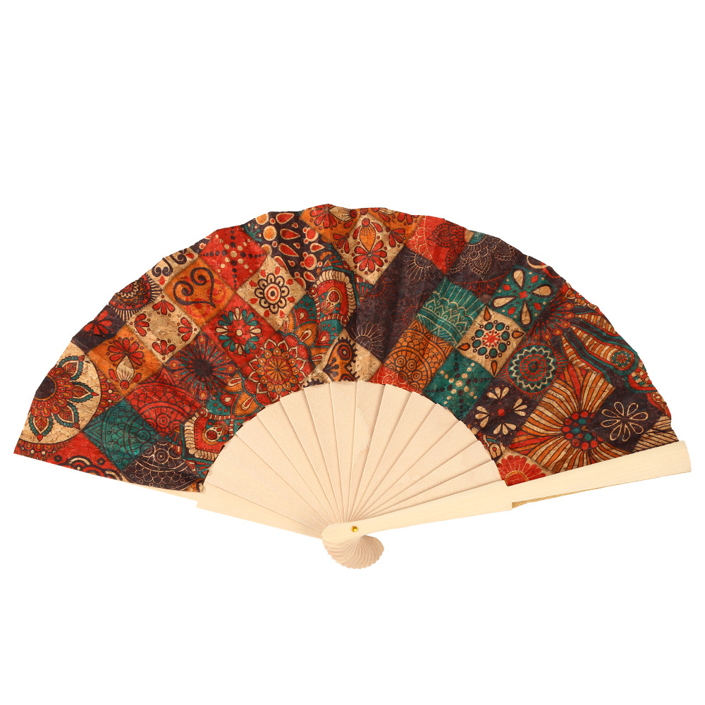 新しい中国風の古典的なプリント木目扇子ポータブル漢服アクセサリー扇子木製ハンドル国家トレンドレトロ扇子