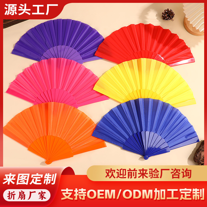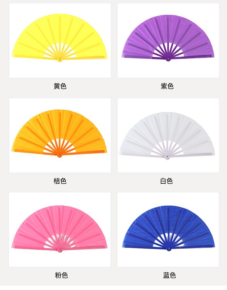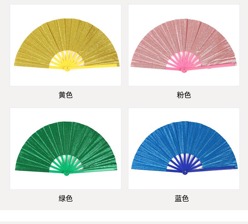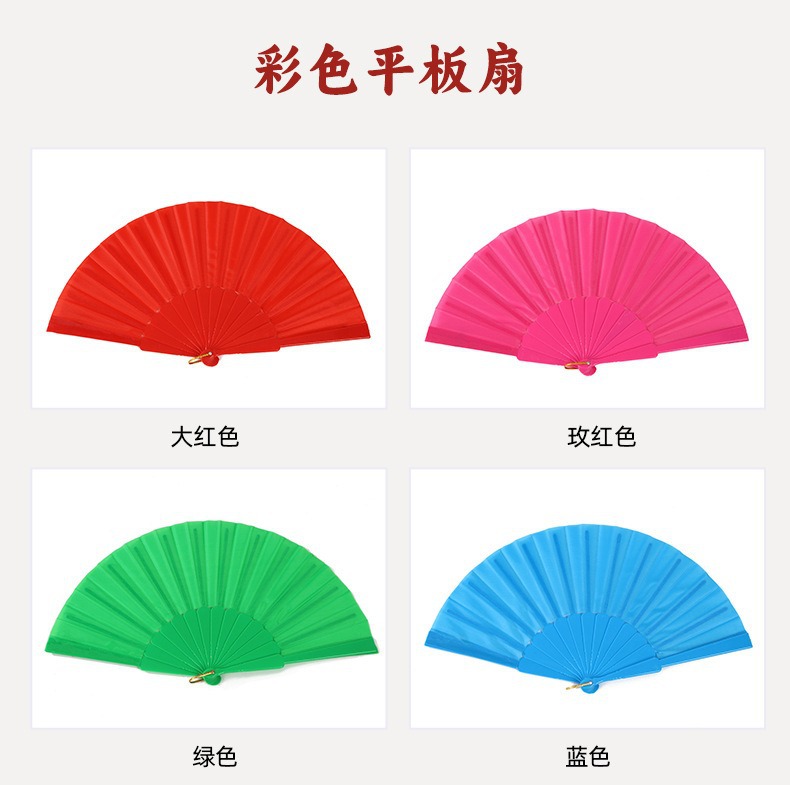 亮粉平板扇子塑料响扇折扇炫彩舞台表演素面太极扇工艺礼品扇批发