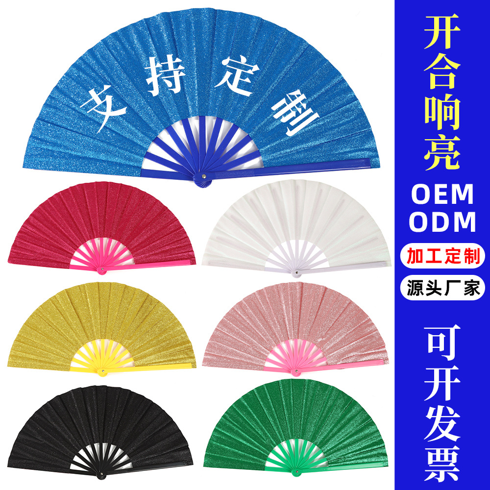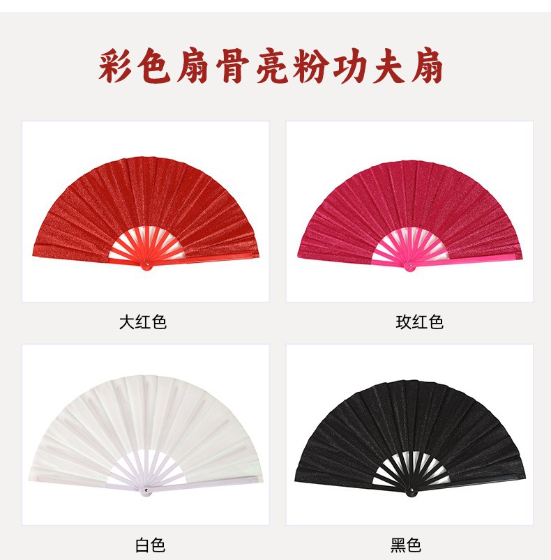 アマゾングリッターパウダープラスチックカンフーファン学生ダンスパフォーマンスファン両面明るい折りたたみファン卸売