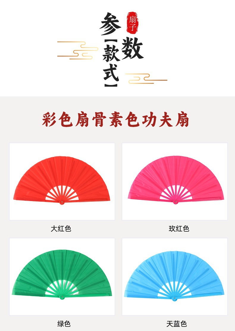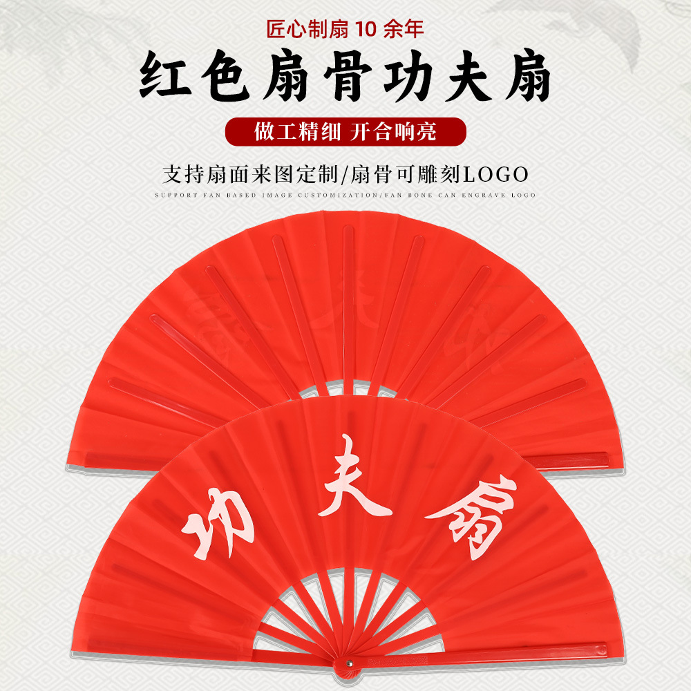 メーカー太極拳カンフーファン広場武道パフォーマンスプラスチック扇子赤中国風扇子運動扇子