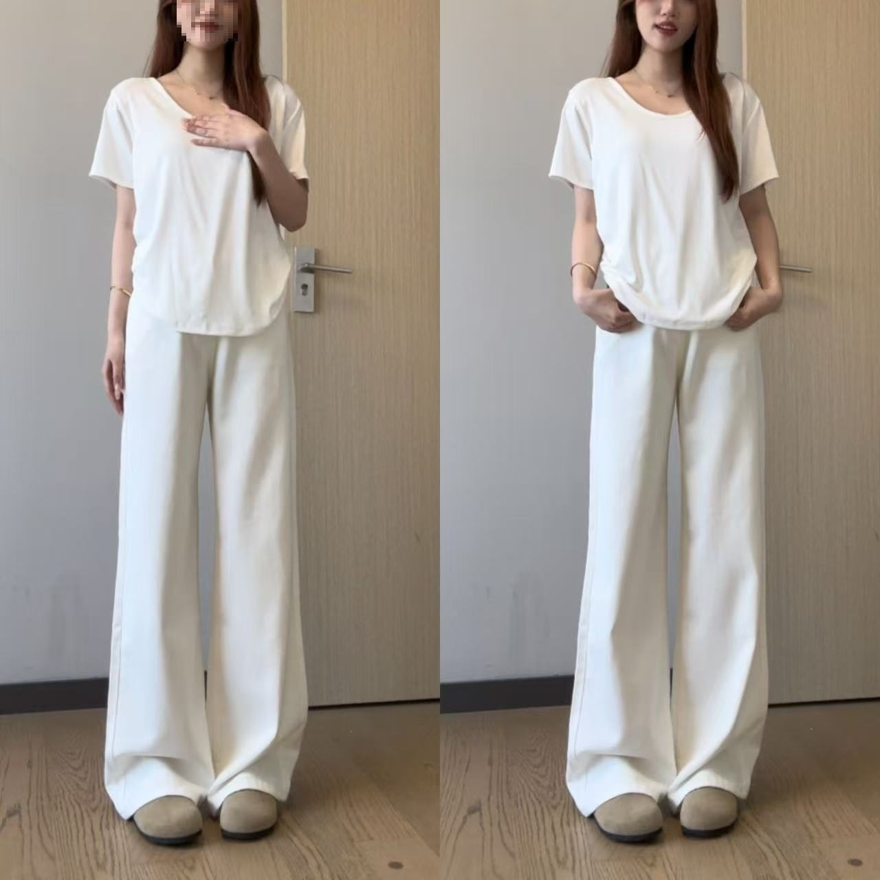 レース巾着ワイドレッグパンツ女性のための狭いボードドーパミン夏ドレープスリムストレートカジュアルパンツズボンプリント