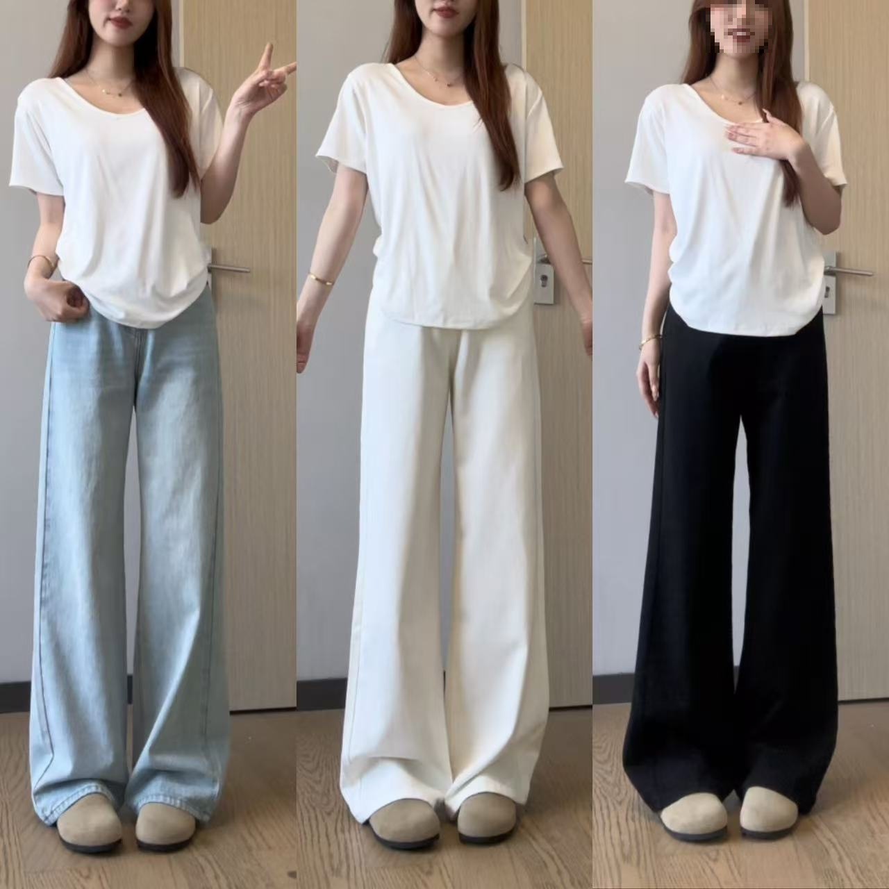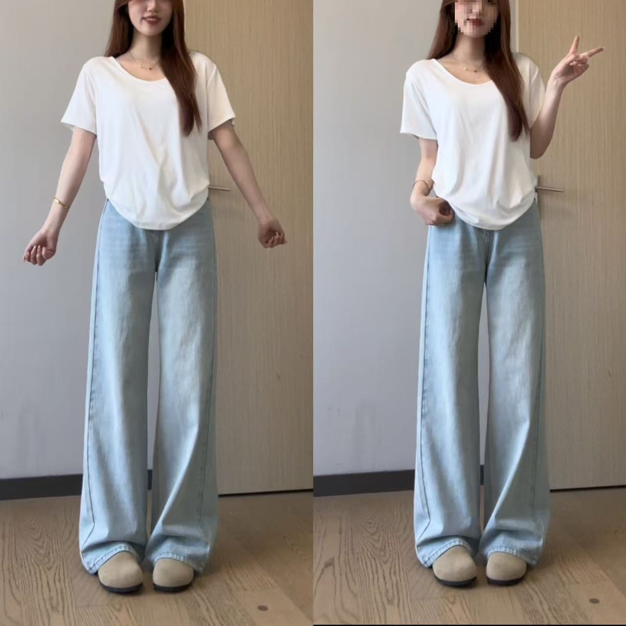 [狭いバージョンの小さなワイドレッグ] 夏用の女性用ハイウエストジーンズ、多用途、ゆったり、スリムなデザイン、エクストラロングフロアレングスパンツ