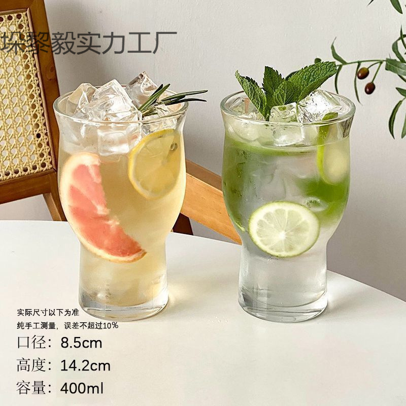ins网红餐厅宽口果茶杯超大容量玻璃杯子奶茶饮品果汁杯冷饮杯子