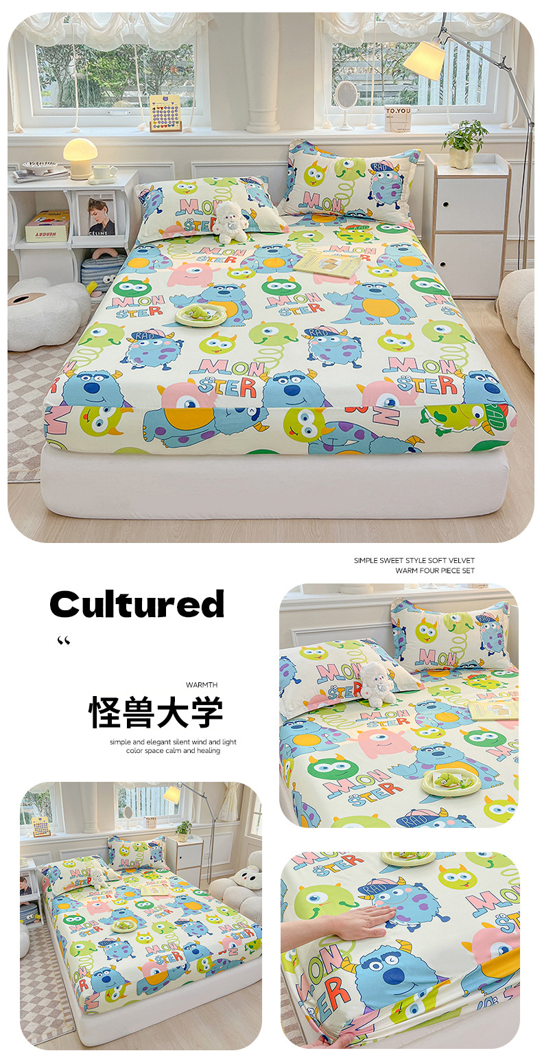 卸売シングルピース起毛ベッドシーツベッドカバーマットレスカバーオールシーズンユニバーサル保護カバー滑り止めオールインクルーシブ起毛ベッドシーツクロスボーダー