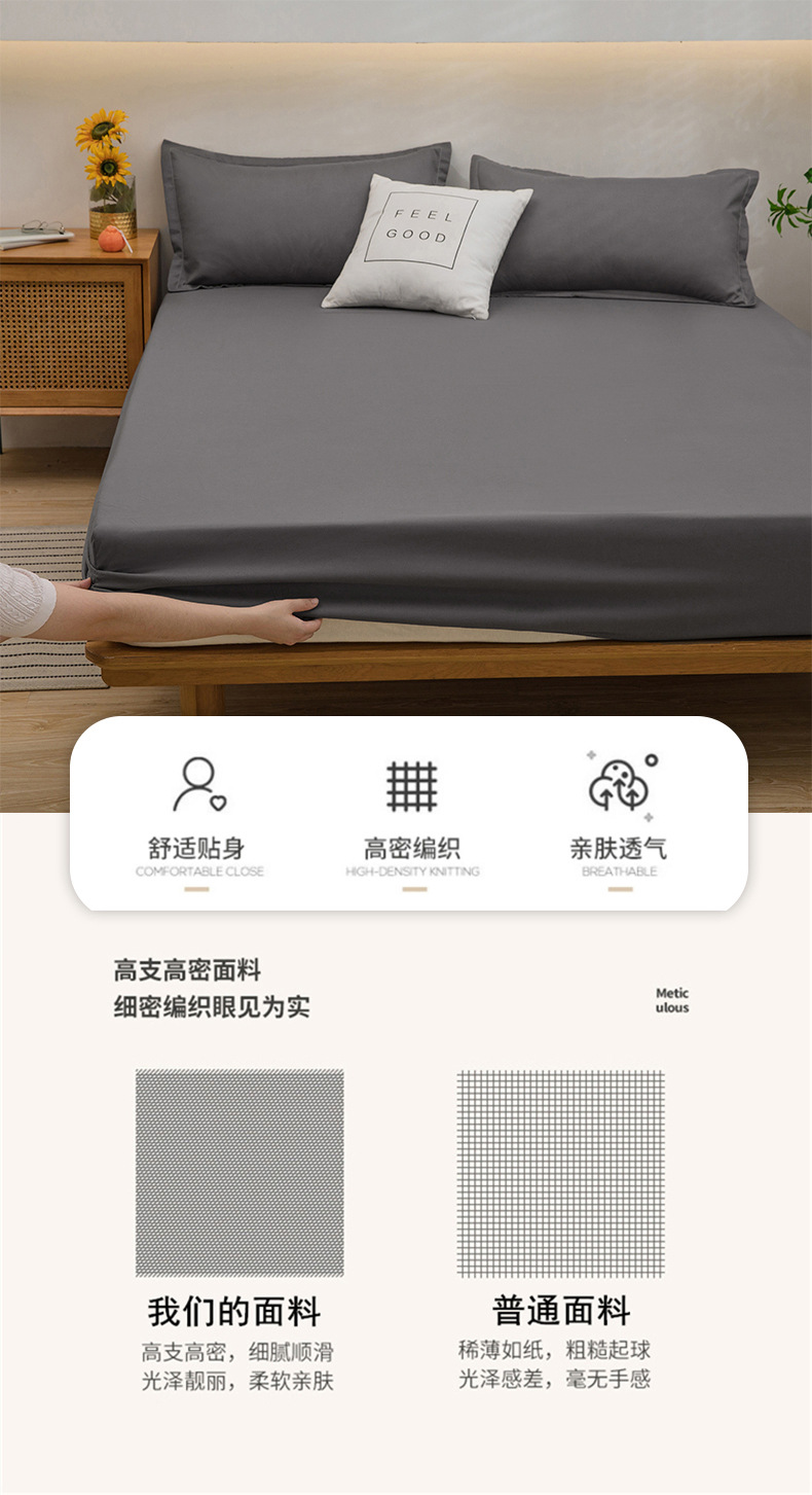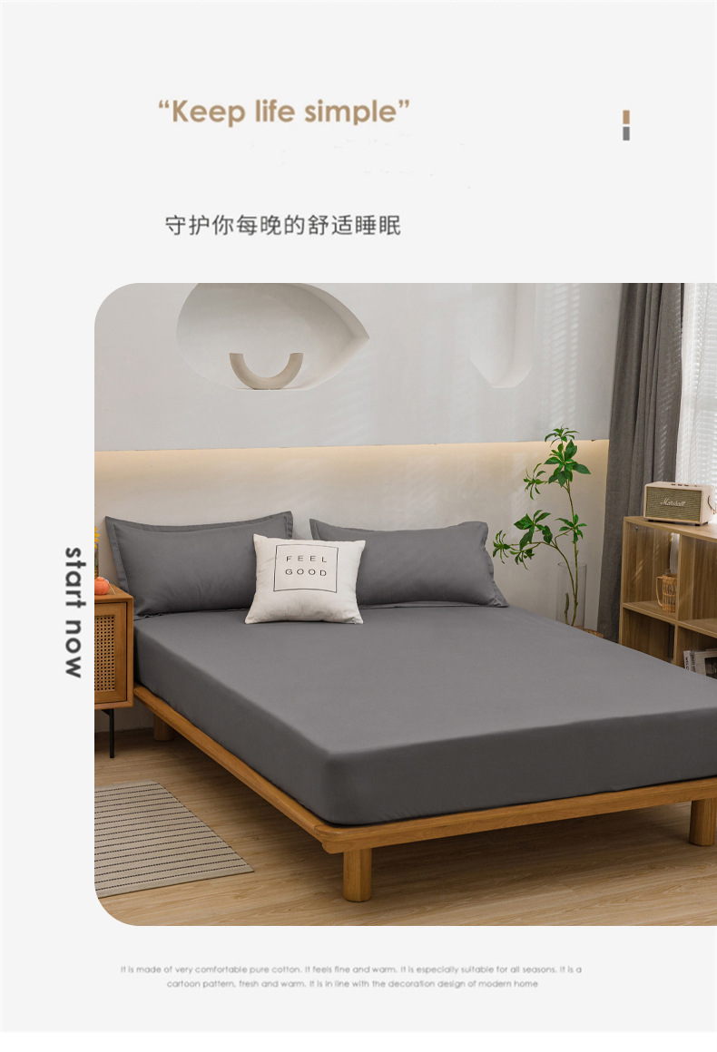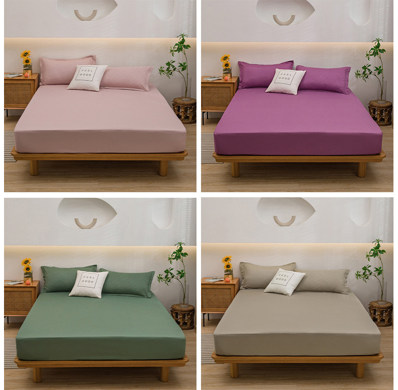 純色のベッドカバー単品一枚の水洗浄綿の夢思滑り止めマットレス保護カバー防塵ベッドカバー三点セットの卸売り