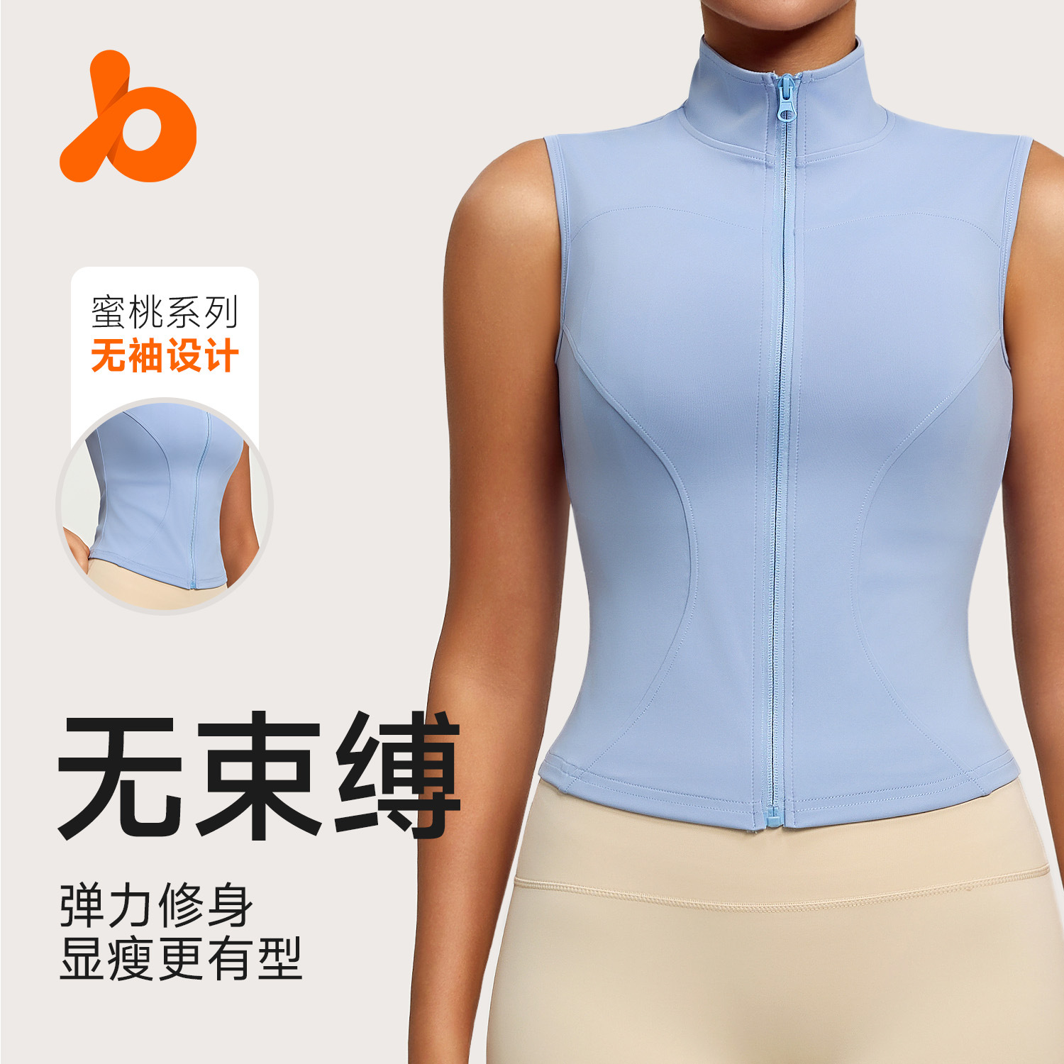聚衣堂春夏新作ノースリーブヨガウェアジャケット、スリムフィット、通気性、着痩せ効果、スタンドカラー、スポーツジャケット