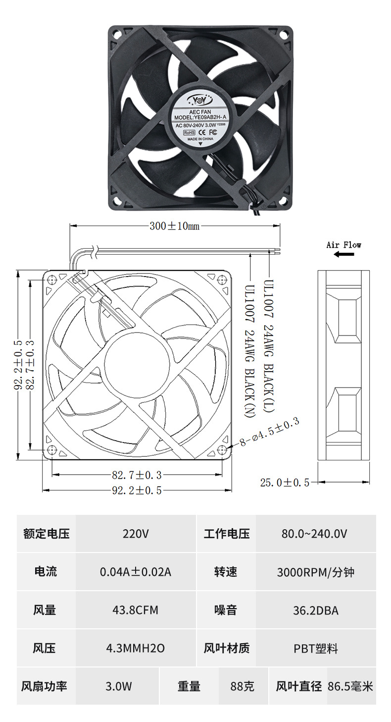产品规格 YE6025,YE8025,YE9225,YE12025,YE12038
