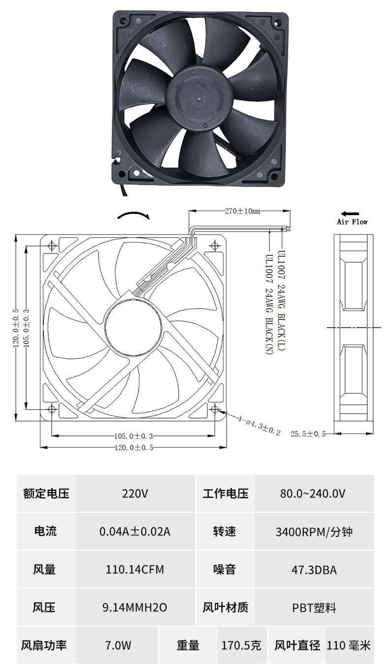斉恒達放熱ファン12025-220v多規格低騒音厚ファン直流ミニ排熱小ファン