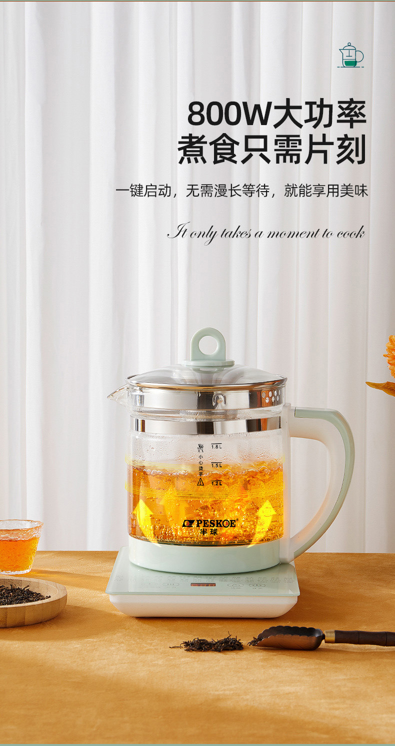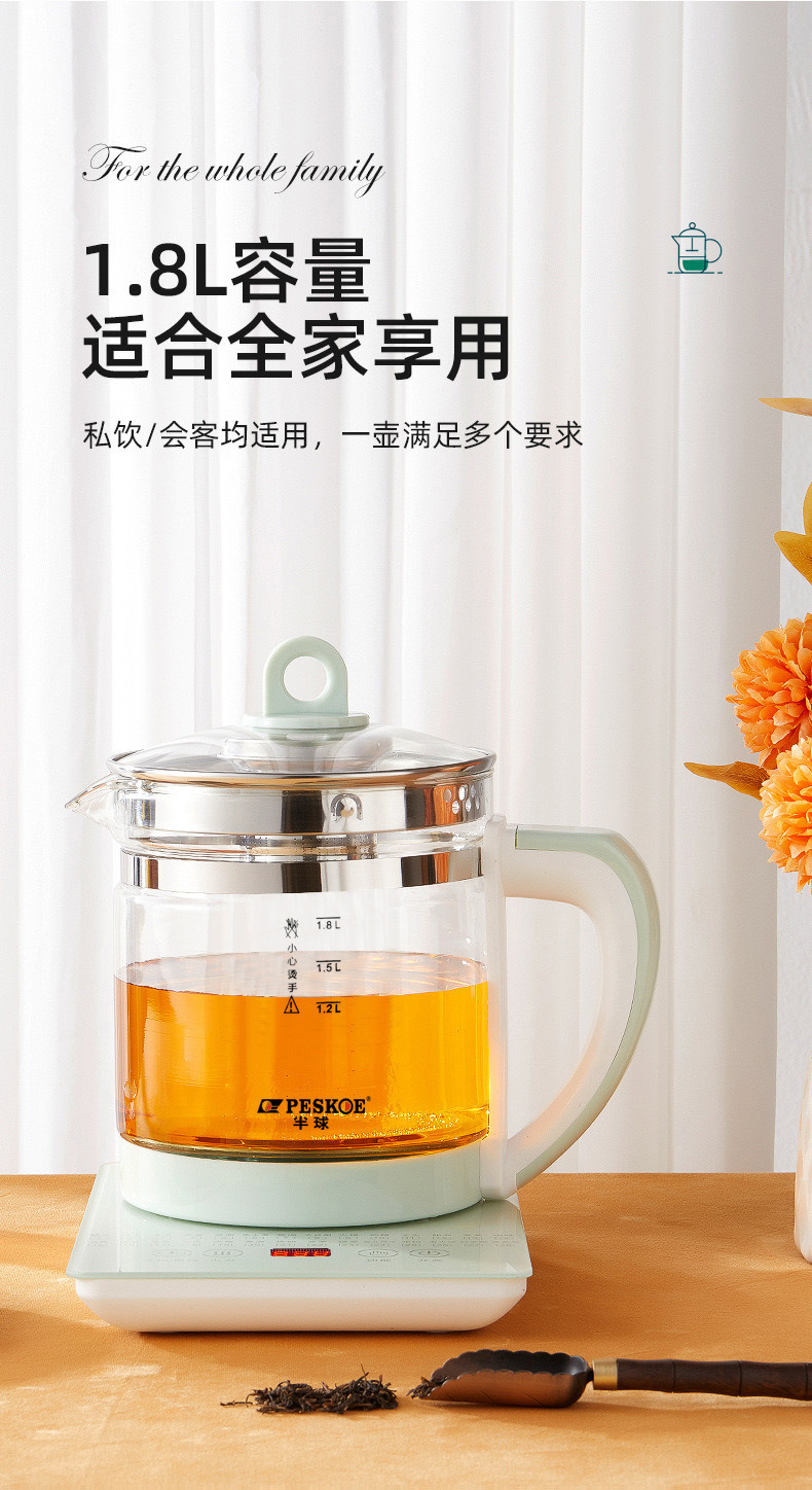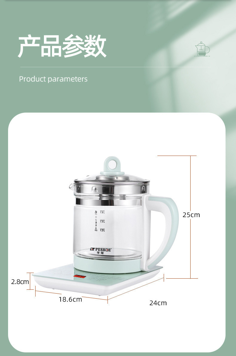 全自動健康ポット家庭用 1.8L 容量多機能ティーポットガラスケトルオフィスお茶作り小型