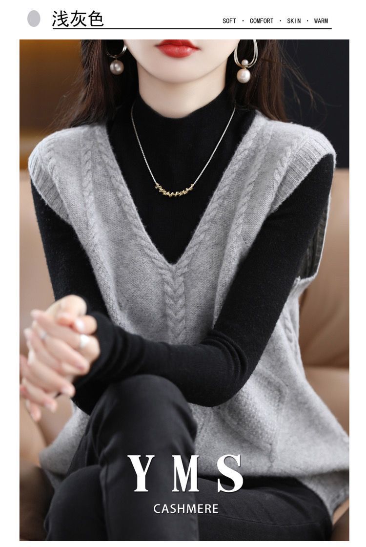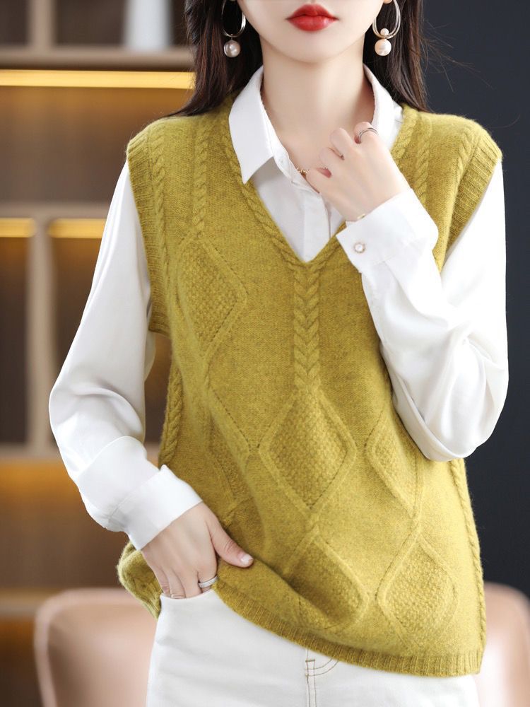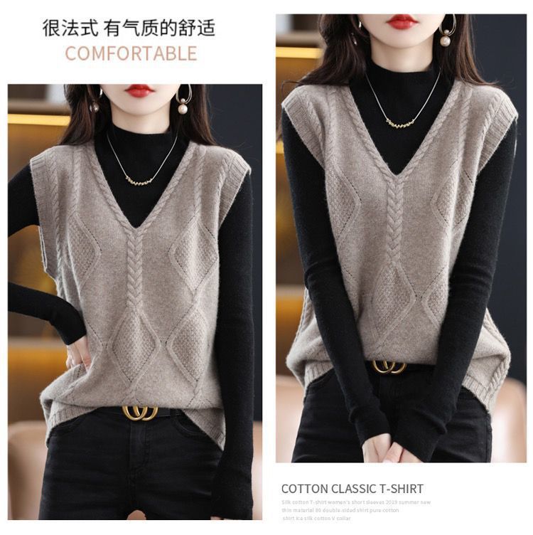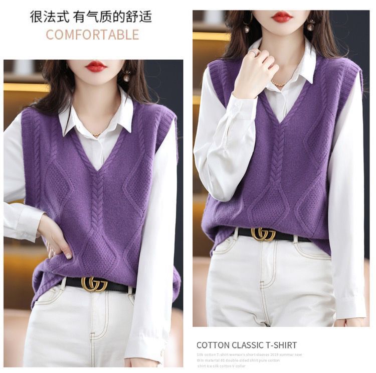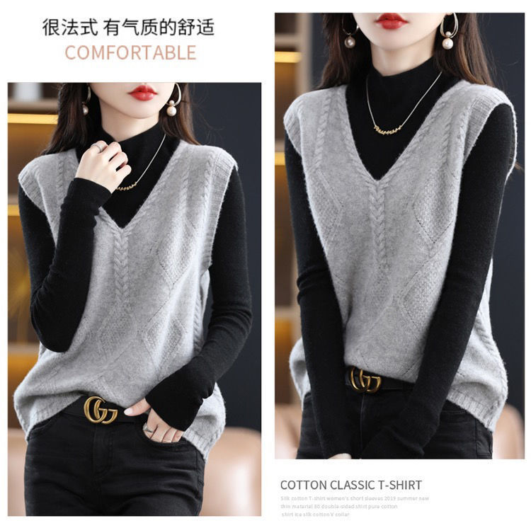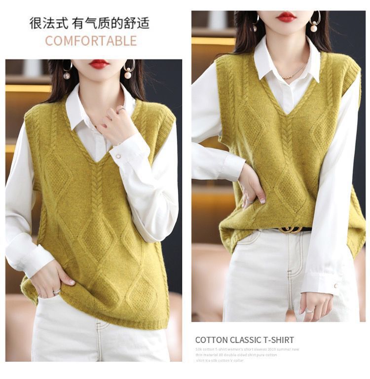 女性が外で着るニットカーディガンベスト、高級秋冬新作レイヤード、ゆったり万能、ゆったりシンプルセーターベスト