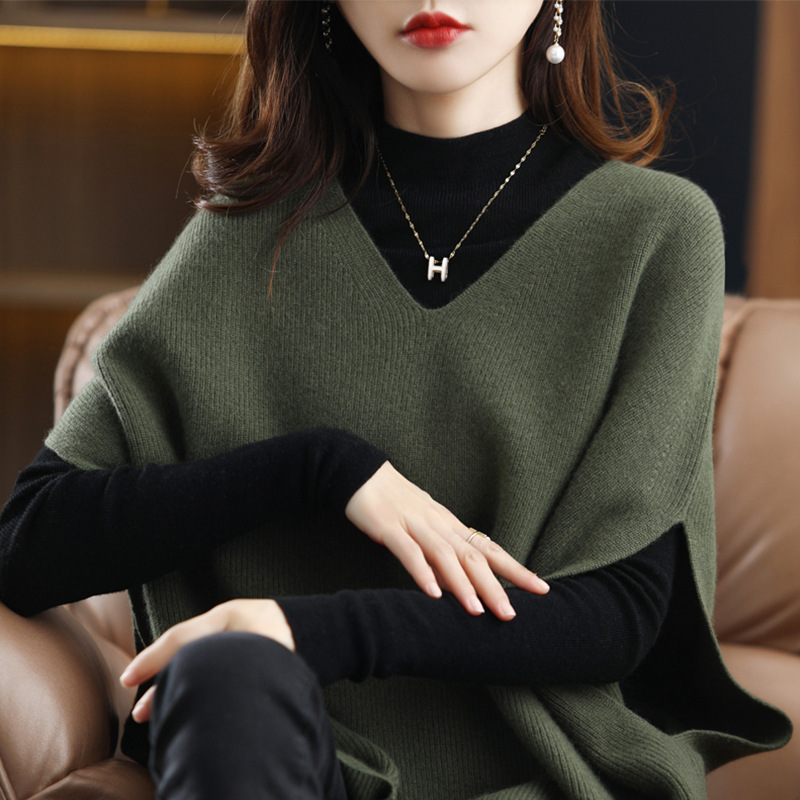 秋と冬の新しいレイヤードウールベスト年齢を減らすポニーニットベスト女性のルーズノースリーブアウターセーター