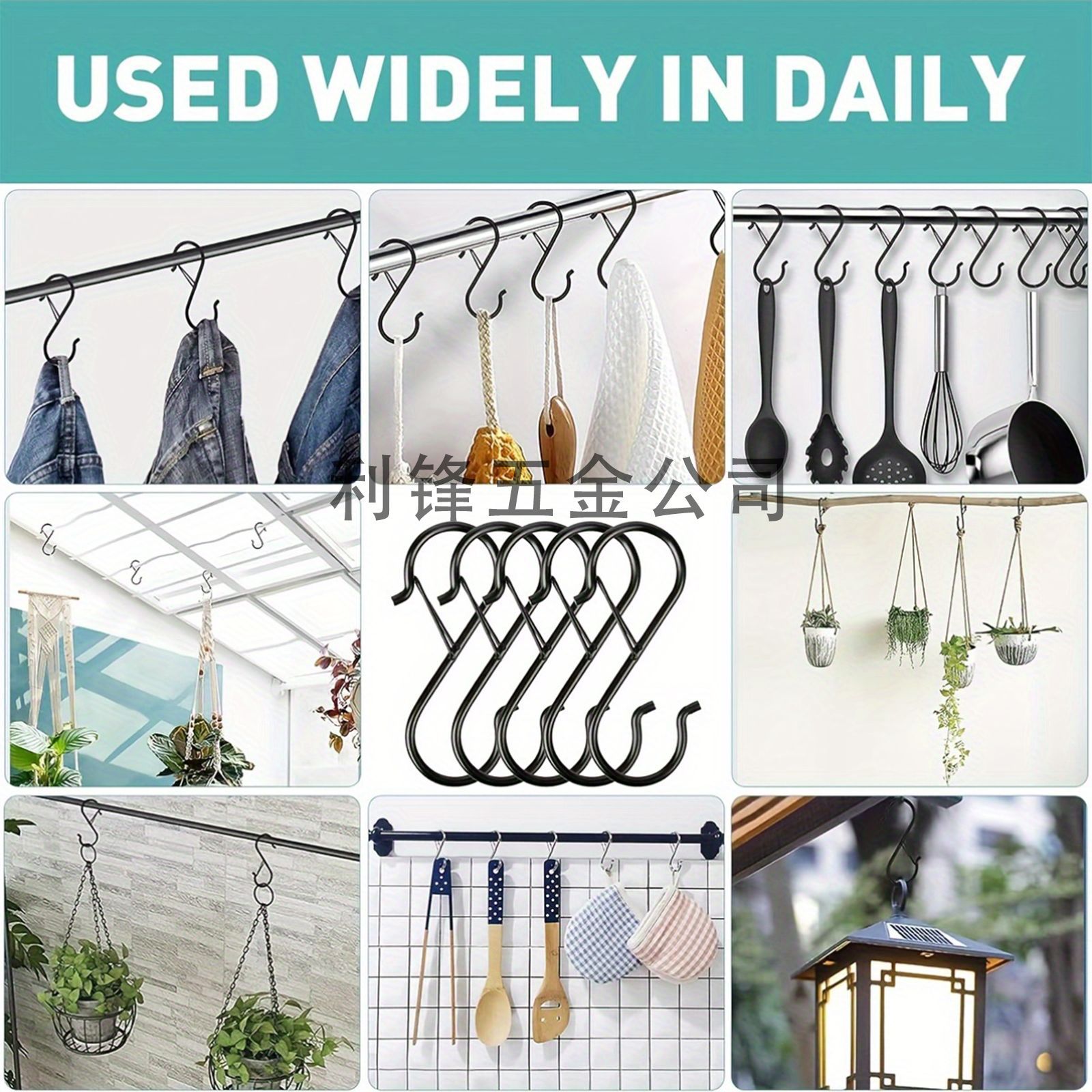 S型フックは、台所用品、鍋とフライパン、コップ、植物、服、バッグを吊るすために使用されます