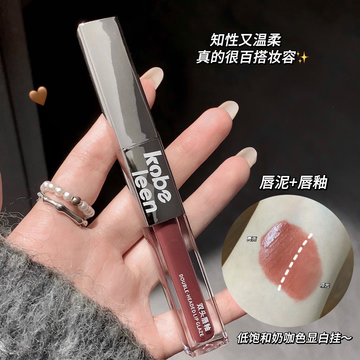 kobeleen双头唇釉水光丝绒雾面显白口红滋润嘟嘟唇少女伪素颜唇泥