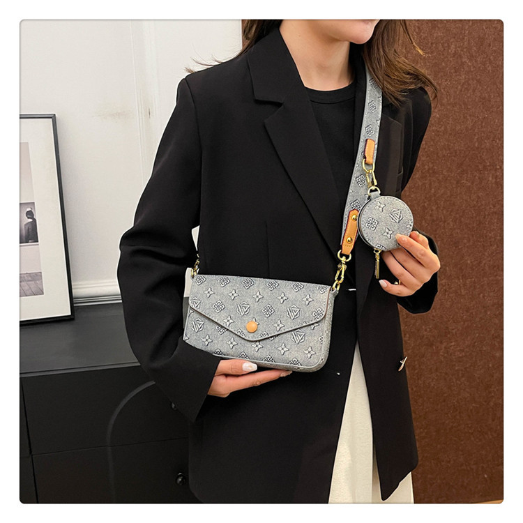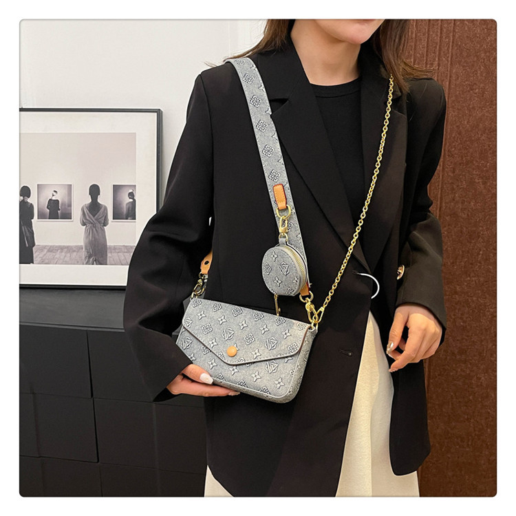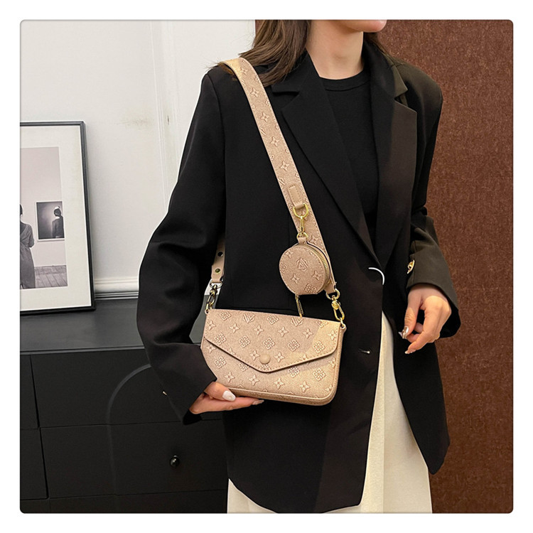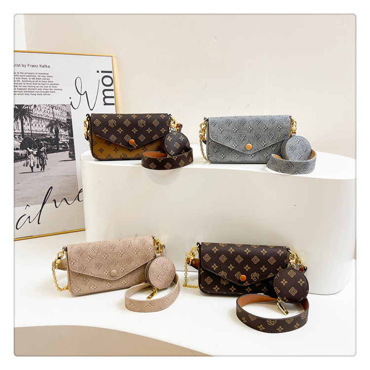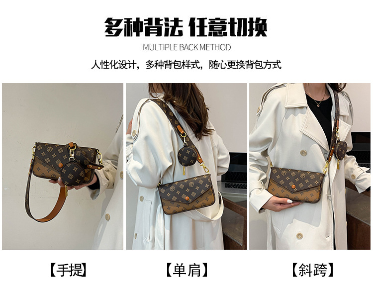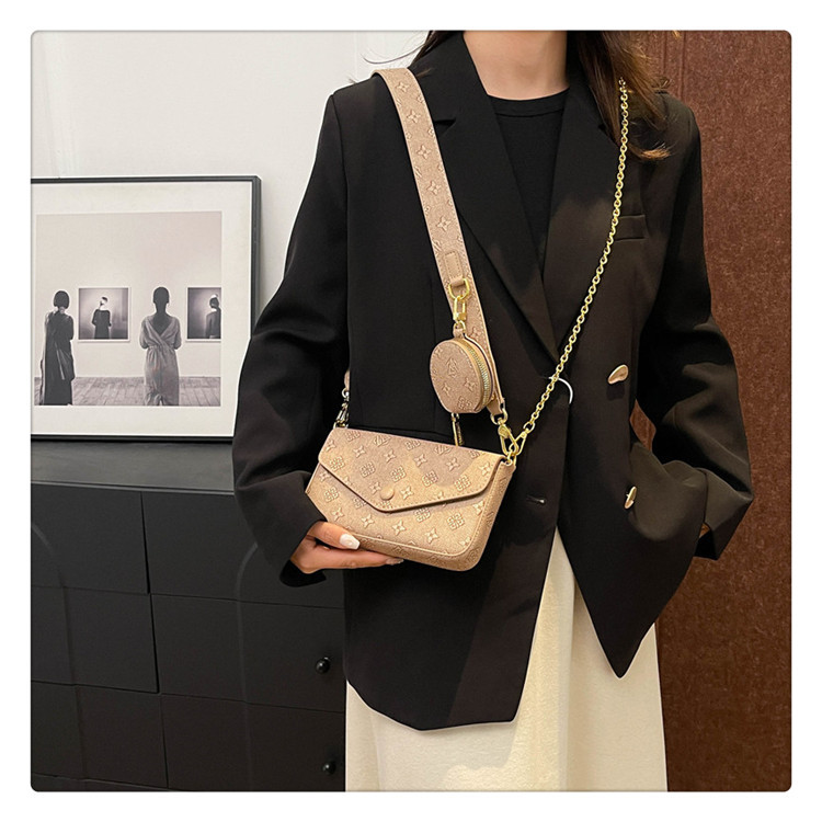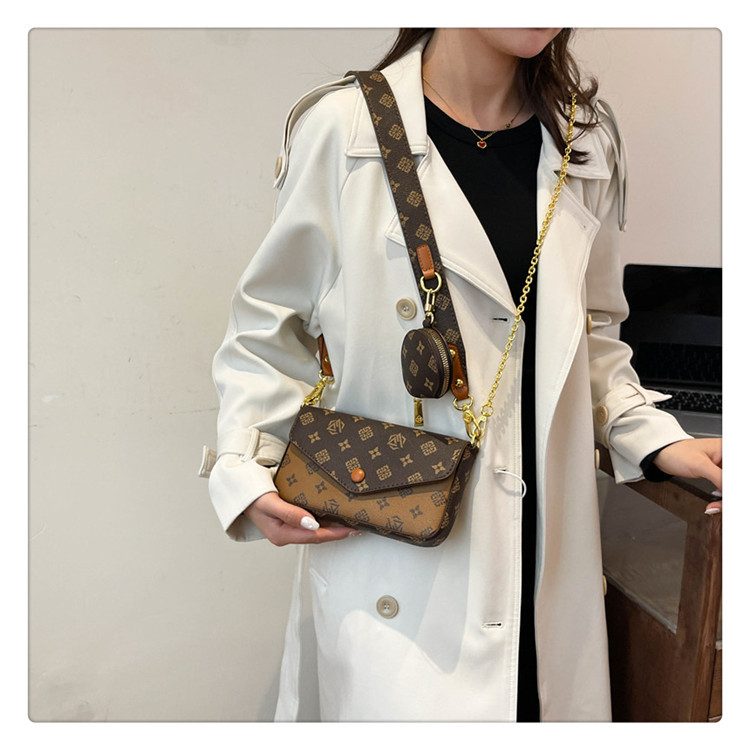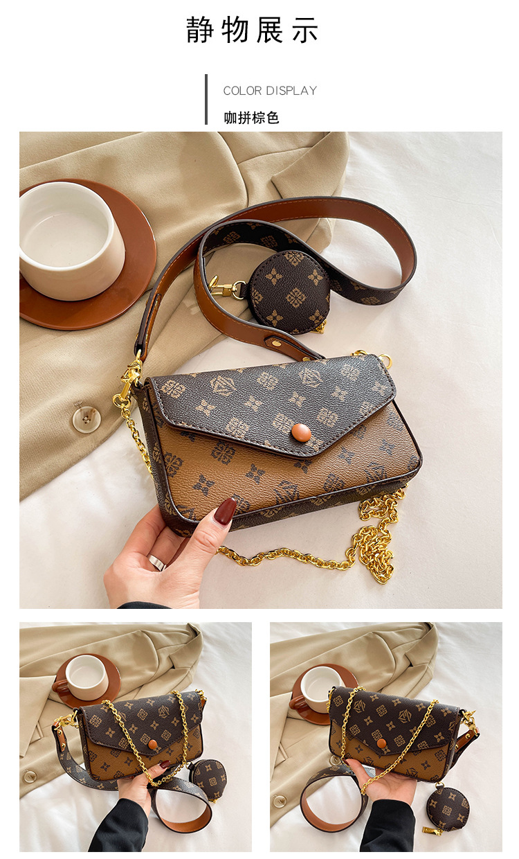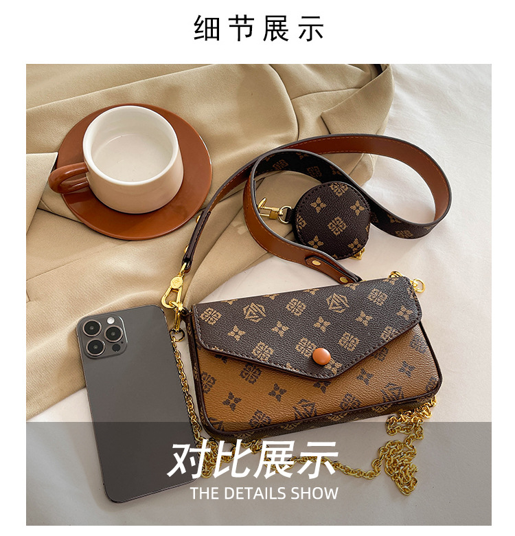 轻奢老花链条小方包女2025新款高级感百搭三合一信封包单肩斜挎包