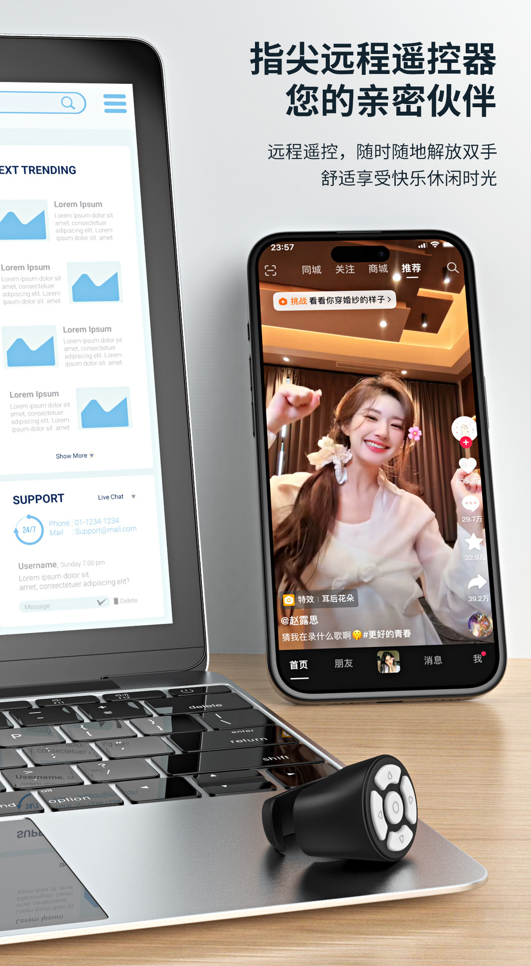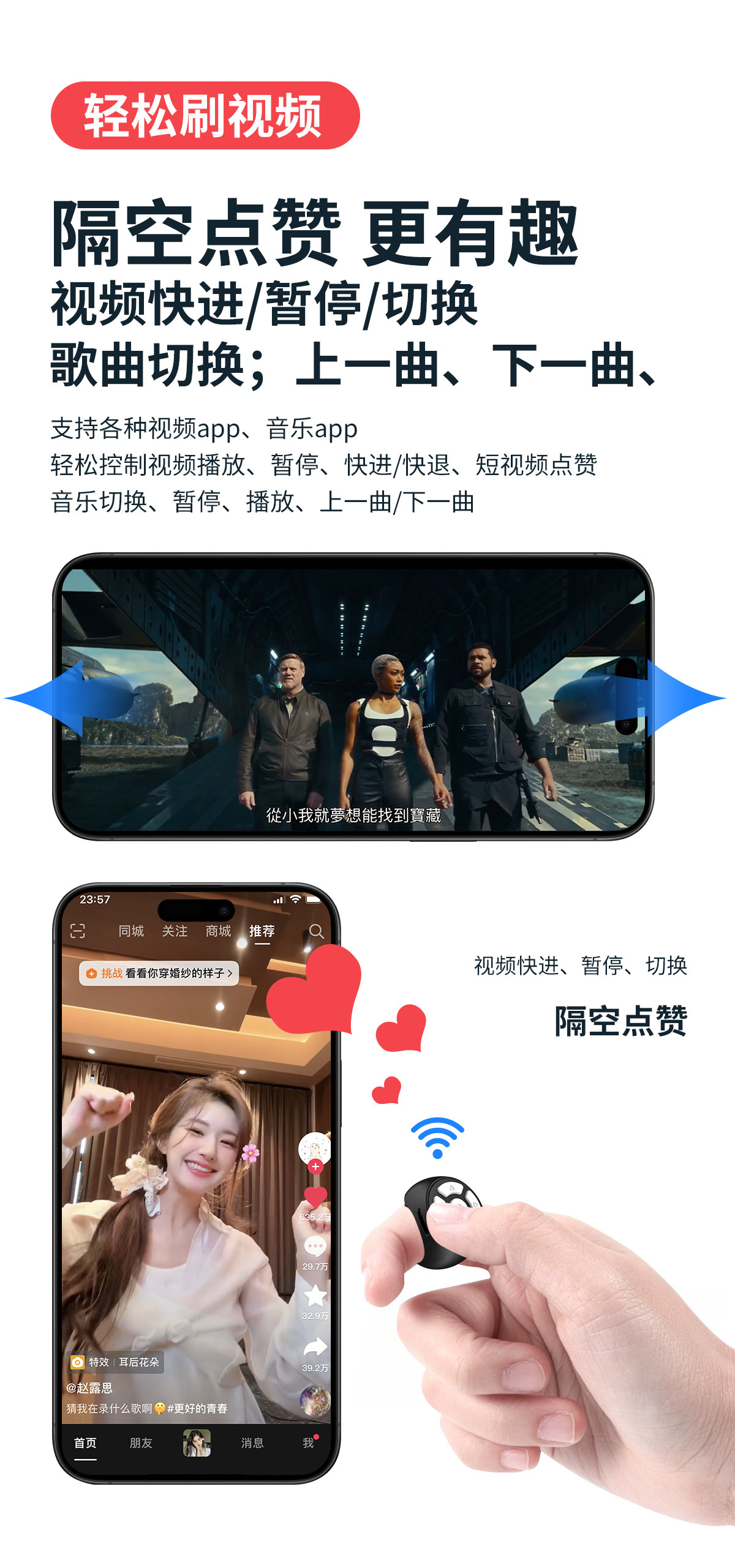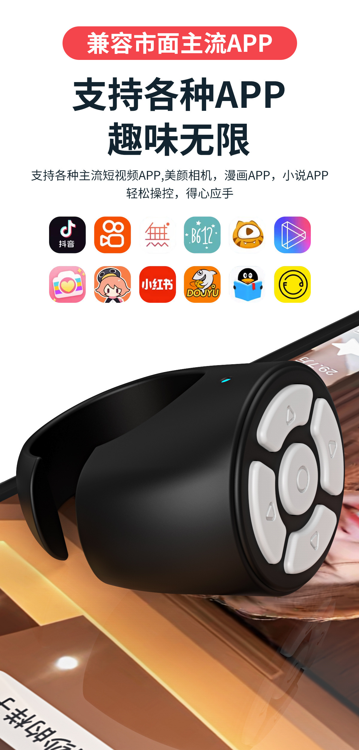 TikTok手机蓝牙视频遥控器智能指环控制器翻页器手机多功能自拍器