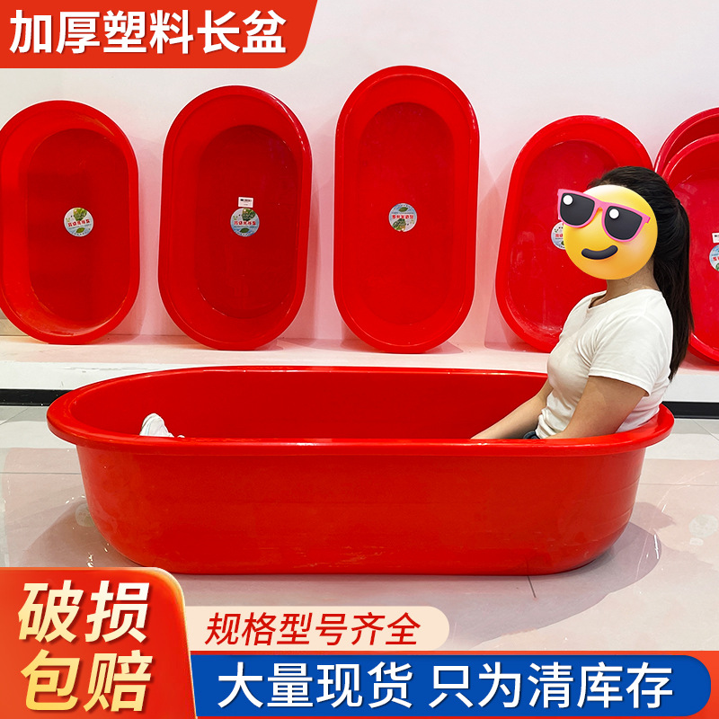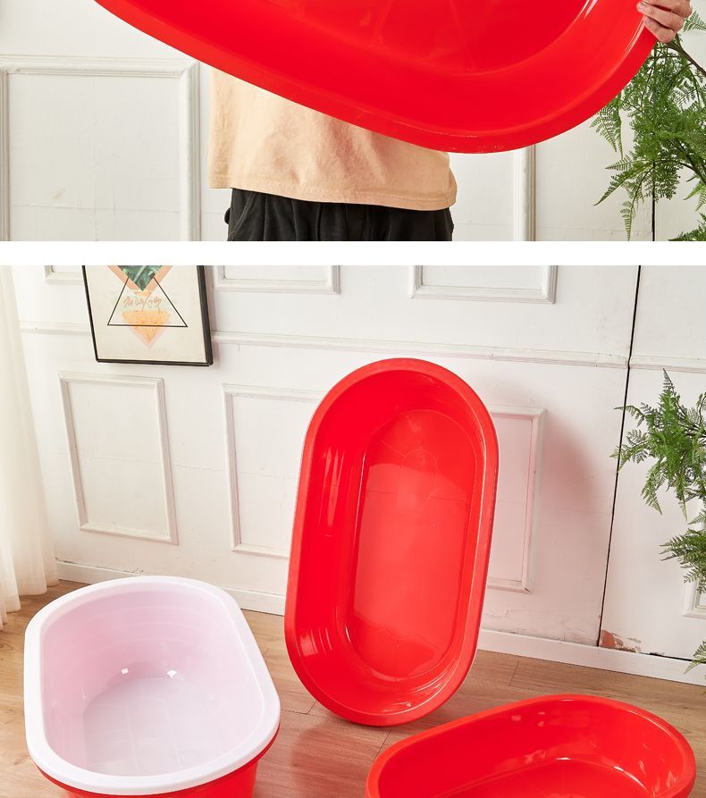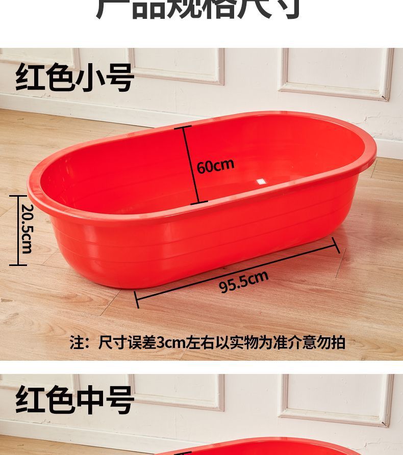 塑料长盆大号加厚长方形洗澡盆红色圆形盆成人儿童家用沐浴泡澡盆