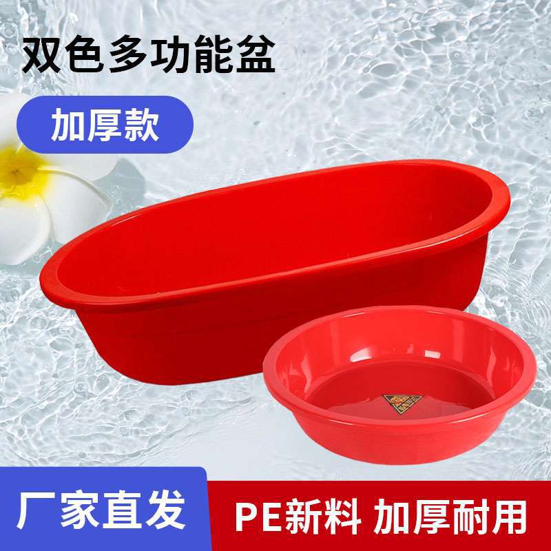 *长方形塑料盆椭圆形特大号超大号加深红色熟胶洗澡水盆脸盆加厚