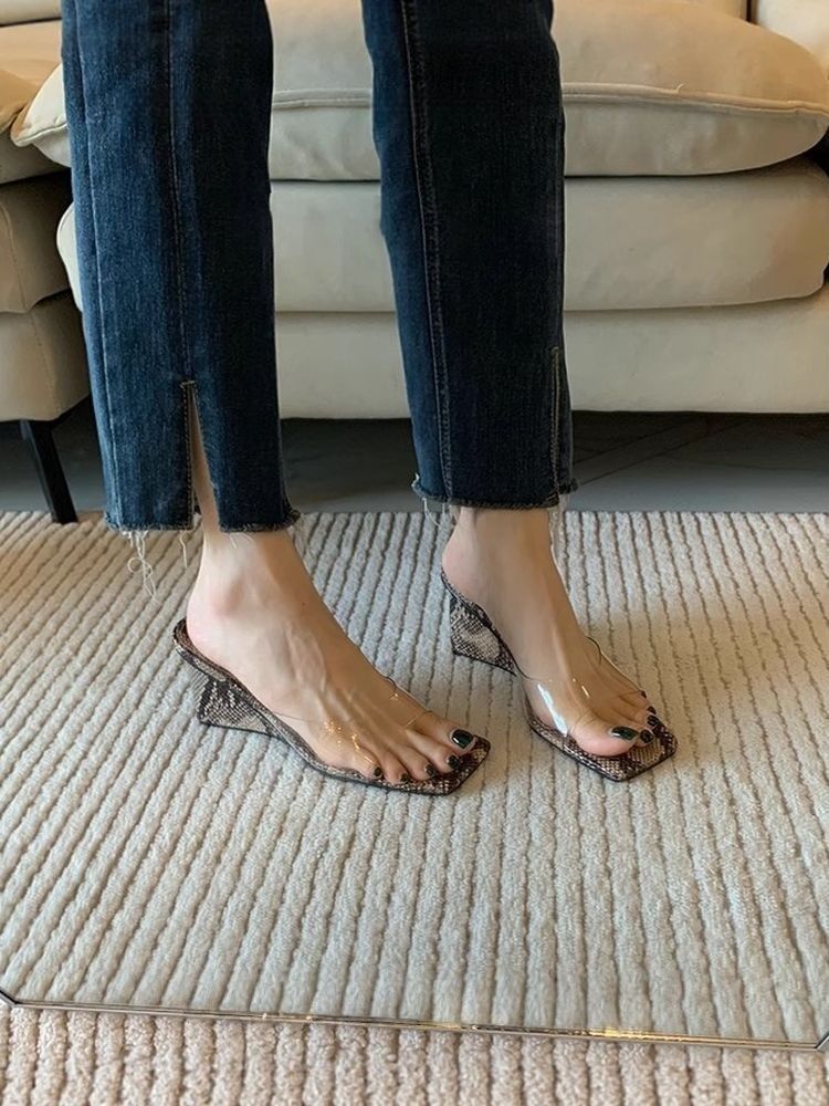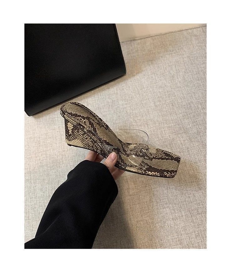 ファッショナブルでハイエンドの女性用スネークプリントウェッジサンダル 2025 夏透明ストラップスリッパオープントゥハイヒールサンダル
