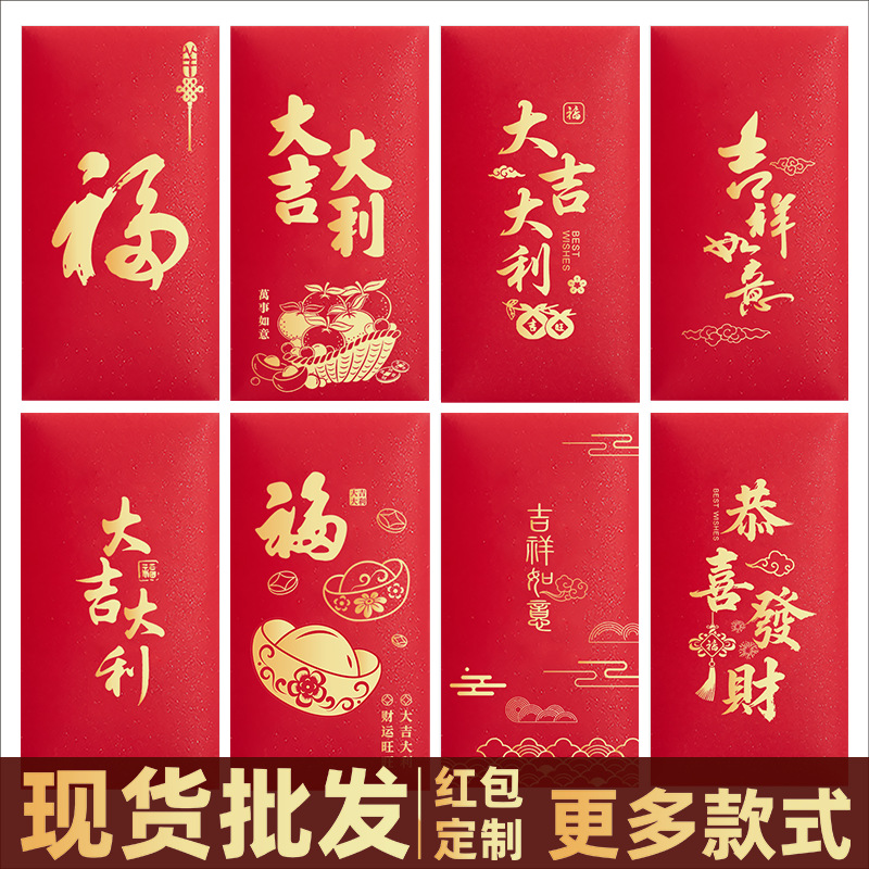 在庫あり卸売キラキラ紙マット加工厚手馬年紅包会社共通大吉大利福字金箔押し福袋