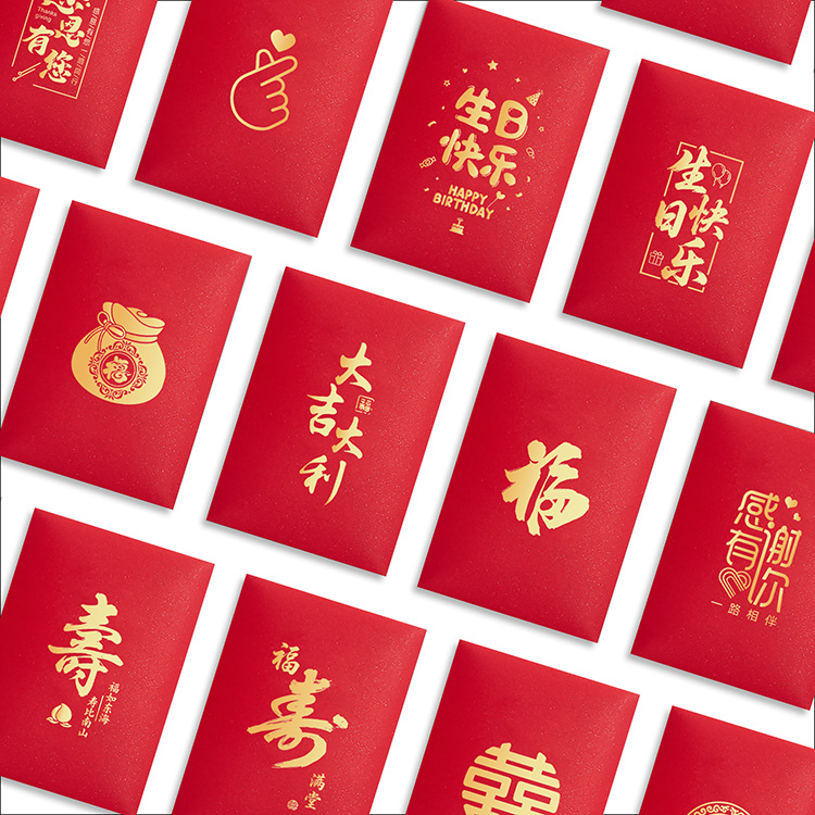 カスタムロゴ入り金箔押し紅包袋、誕生日、満月、百日祝い、宴会、お返し、百元札用