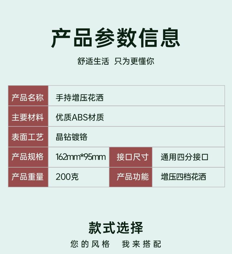 规格 【电镀款】增压按键四档手喷,【电镀款】增压按键四档手喷+支架,【电镀款】增压按键四档手喷+1.5米软管,【电镀款】增压按键四档手喷+2米软管,【电镀款】增压按键四档手喷+支架+1.5米软管,【电镀款】增压按键四档手喷+支架+2米软管,【黑色款】增压按键四档手喷,【黑色款】增压按键四档手喷+支架,【黑色款】增压按键四档手喷+1.5米软管,【黑色款】增压按键四档手喷+2米软管,【黑色款】增压按键四档手喷+支架+1.5米软管,【黑色款】增压按键四档手喷+支架+2米软管,【枪灰款】增压按键四档手喷,【枪灰款】增压按键四档手喷+支架,【枪灰款】增压按键四档手喷+1.5米软管,【枪灰款】增压按键四档手喷+2米软管,【枪灰款】增压按键四档手喷+支架+1.5米软管,【枪灰款】增压按键四档手喷+支架+2米软管