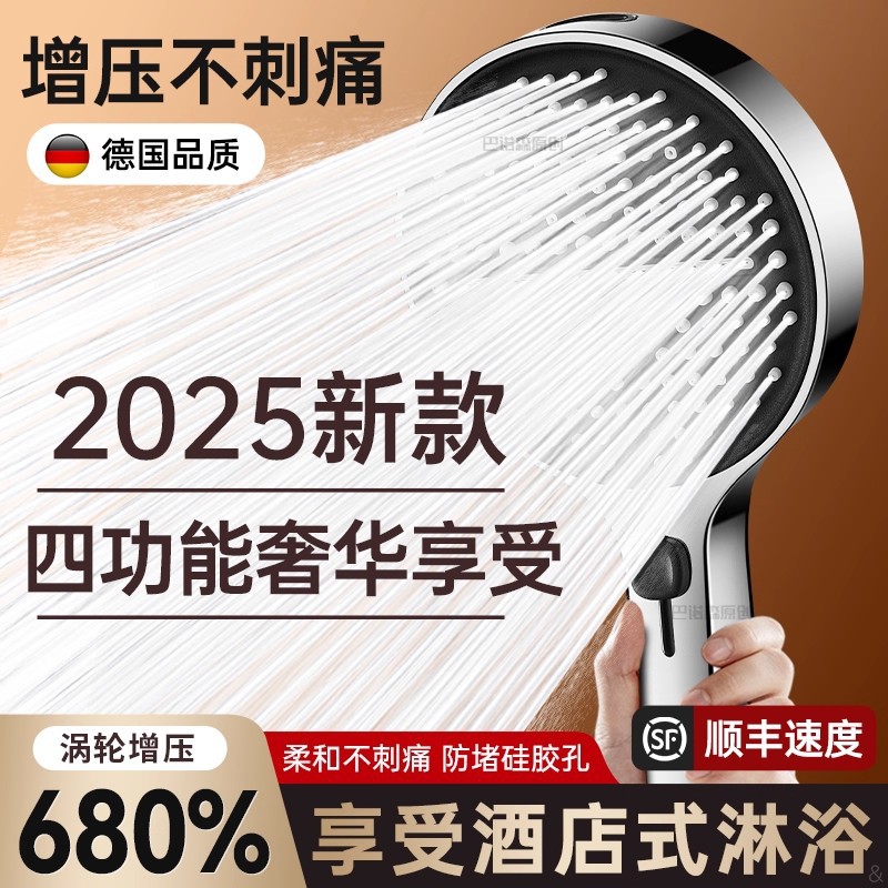 德国增压花洒喷头淋浴头超强加压浴室洗澡家用水龙头浴霸莲蓬套装