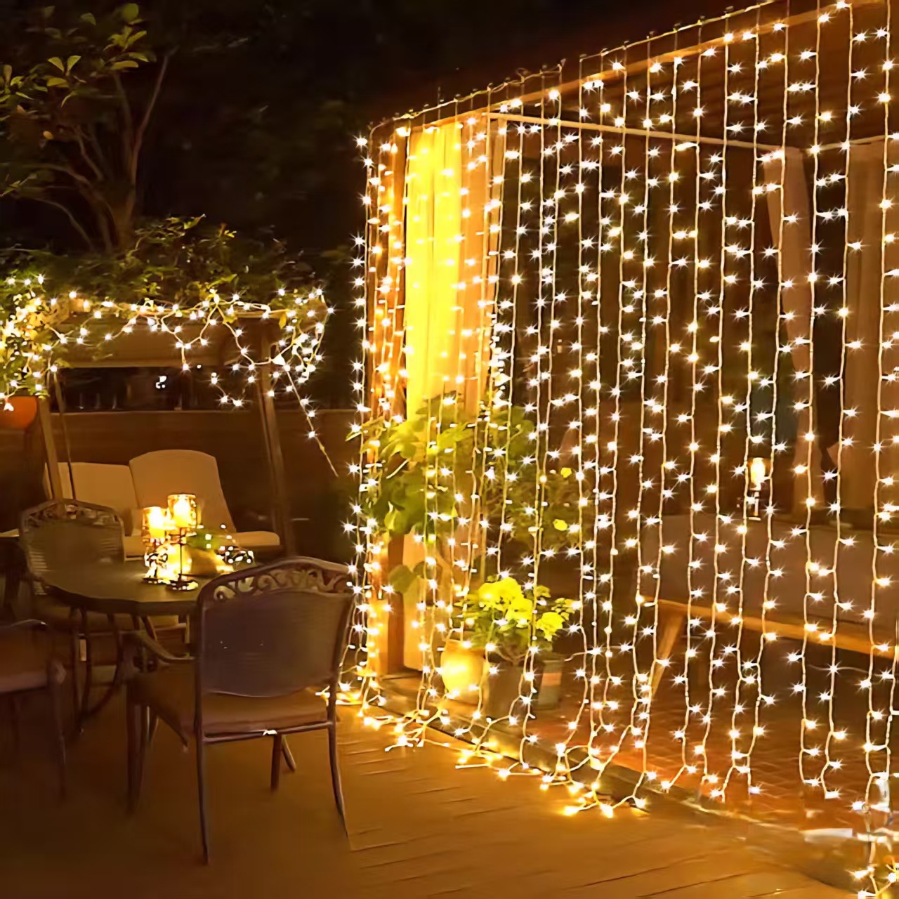 led窗帘灯串3*3米瀑布满天星冰条灯装饰户外防水阳台布置氛围串灯