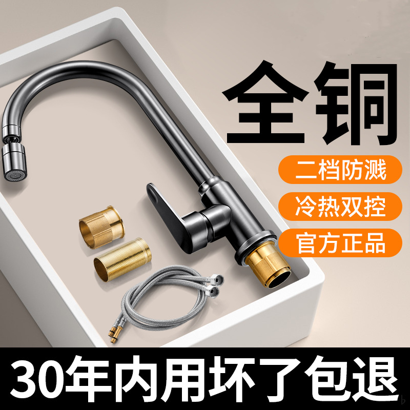 厨房水龙头冷热两用水槽洗菜盆洗碗池精铜单冷万向旋转增压防溅水